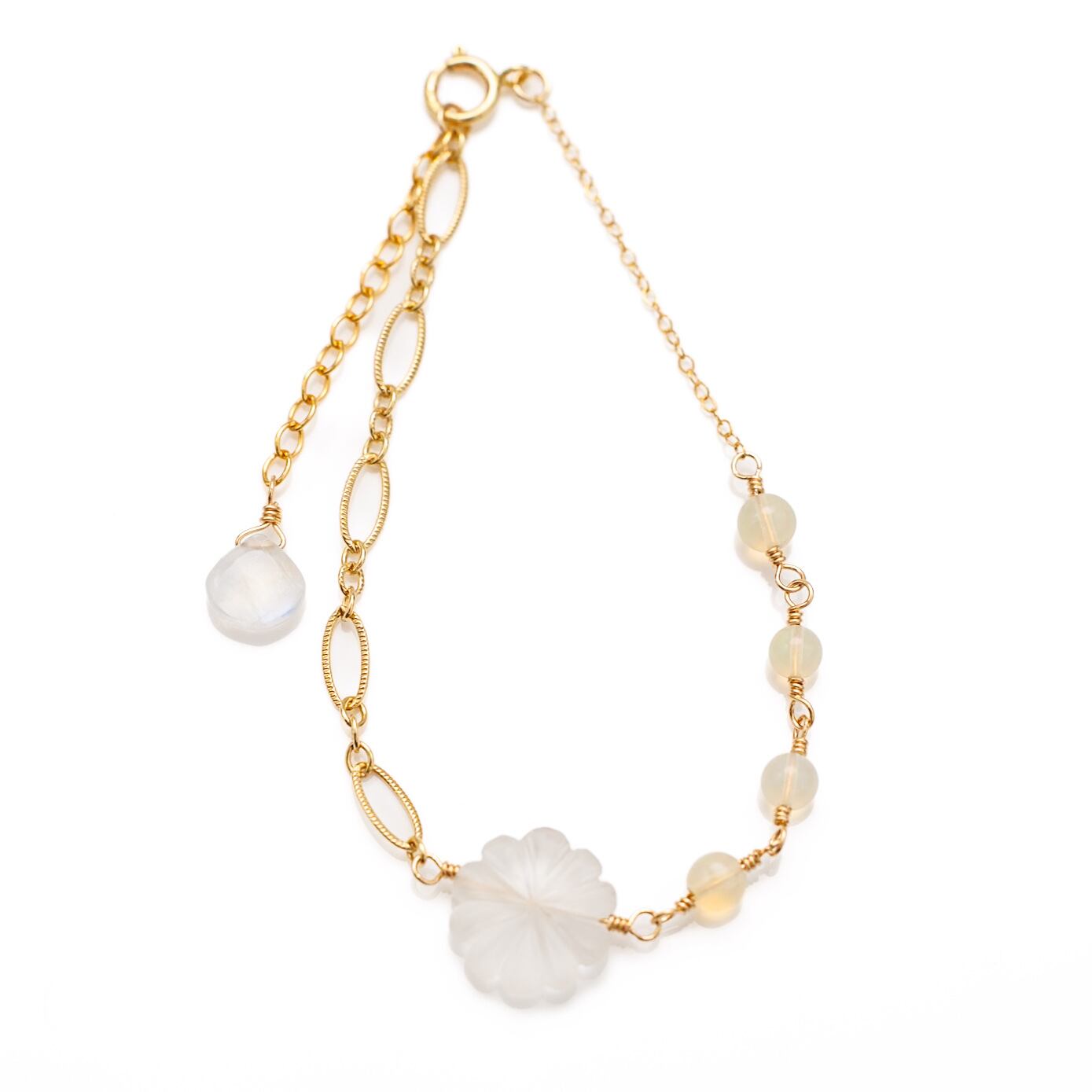 14kgf 水晶 オパール ブルームーンストーン ブレスレット 華奢