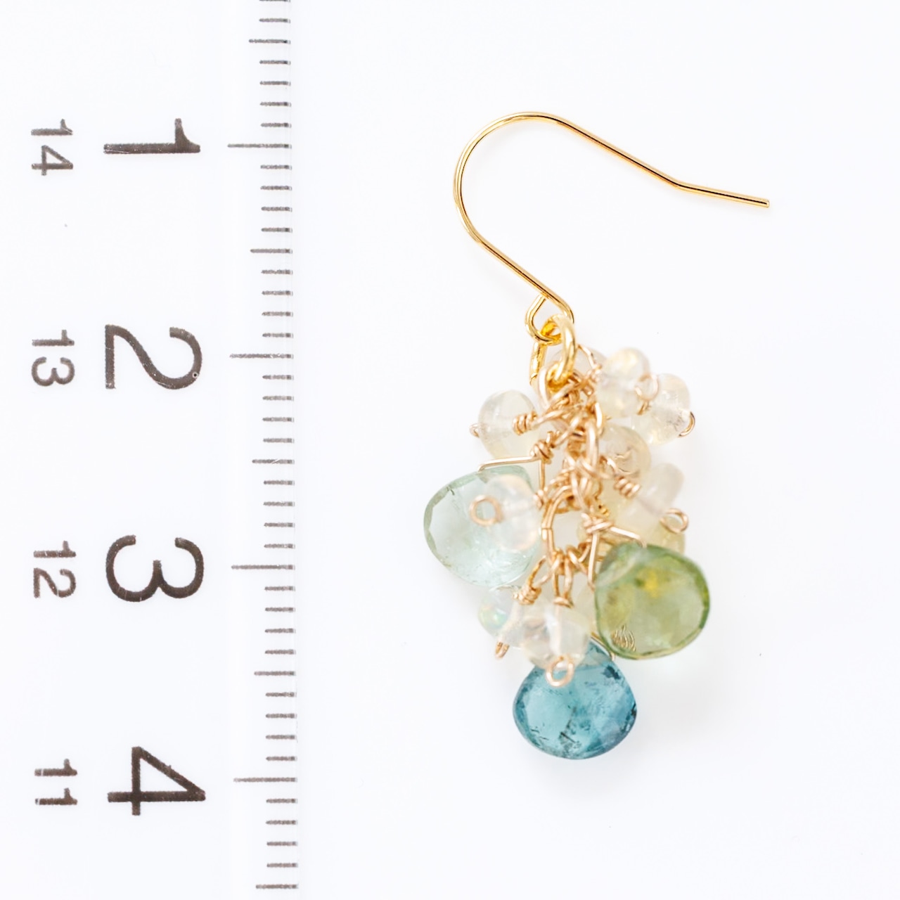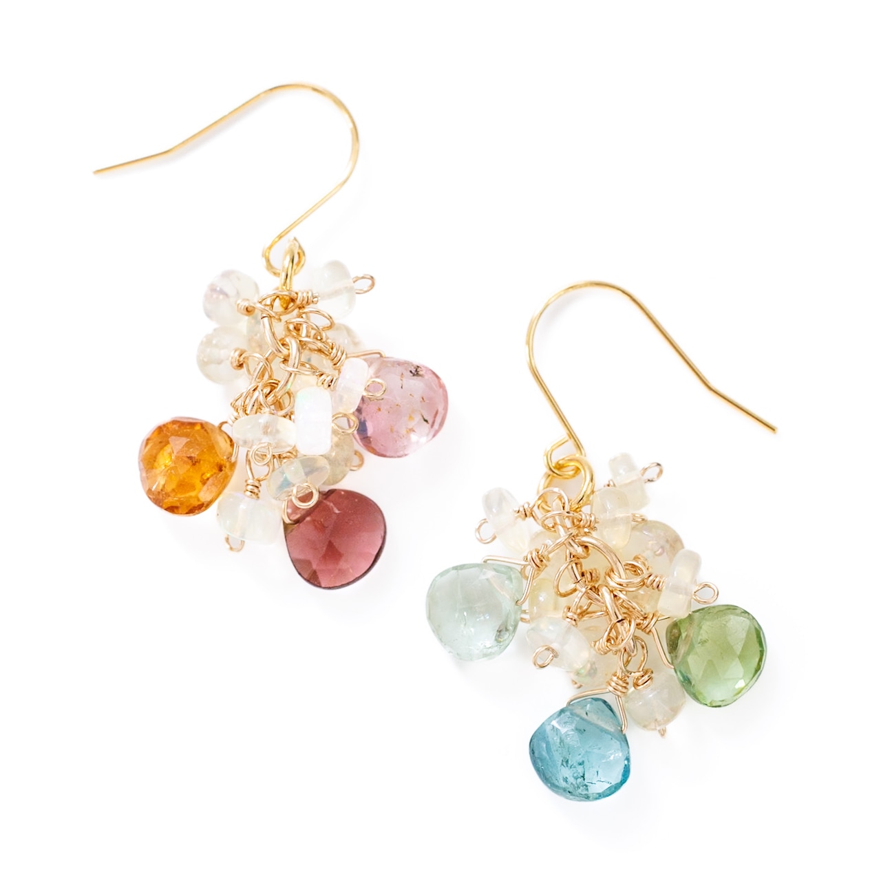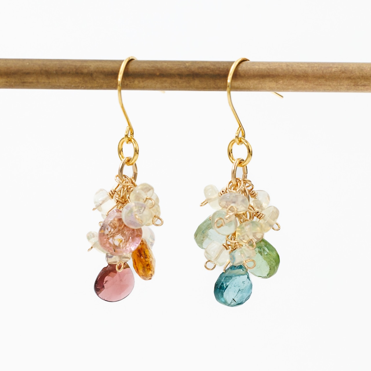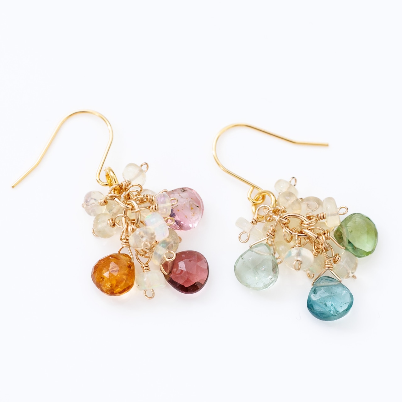10月の誕生石であるトルマリンとオパールを贅沢に組み合わせた、華やかな天然石の耳飾りです。
