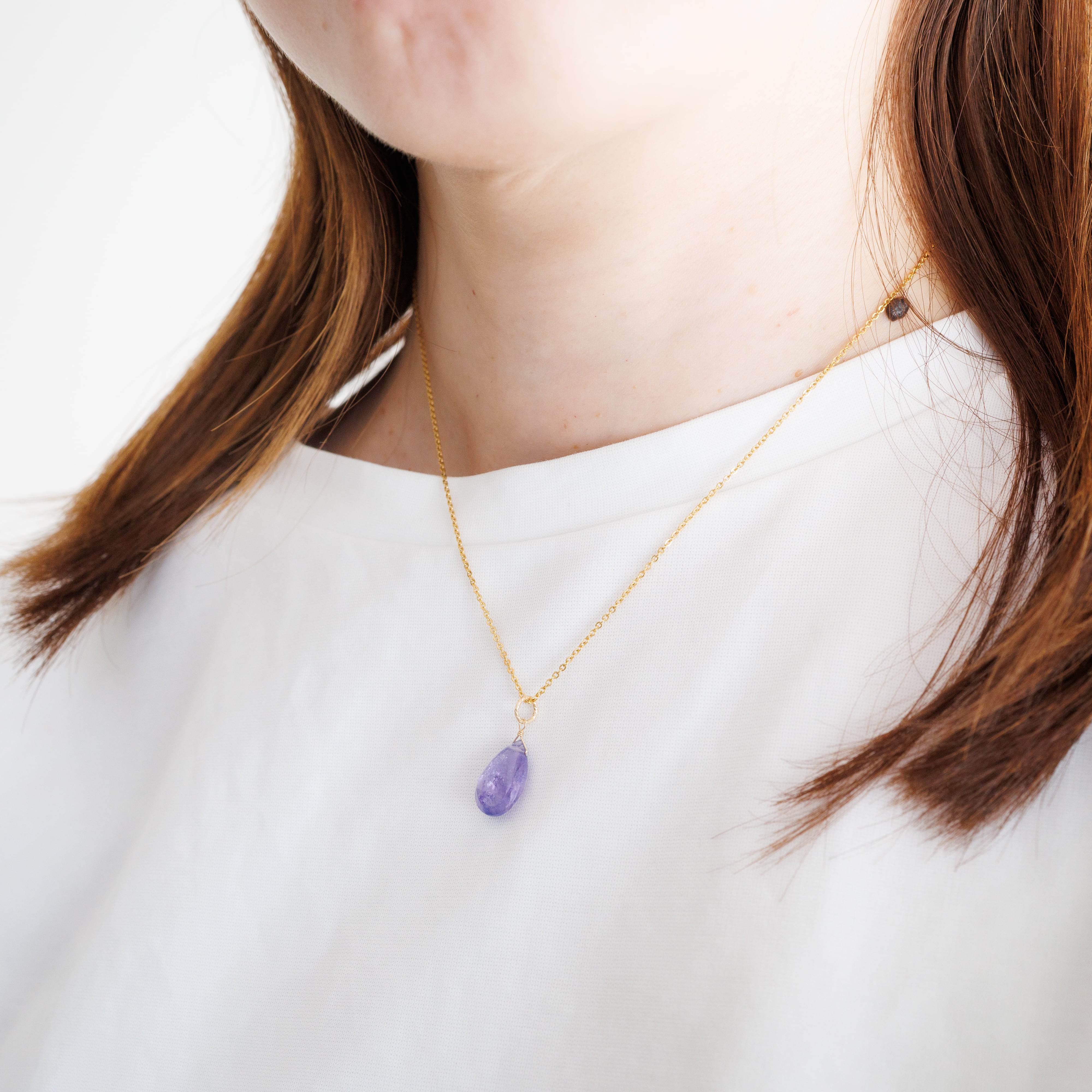 大粒タンザナイトのネックレス 深いパープルブルーが揺れる 12月の誕生石