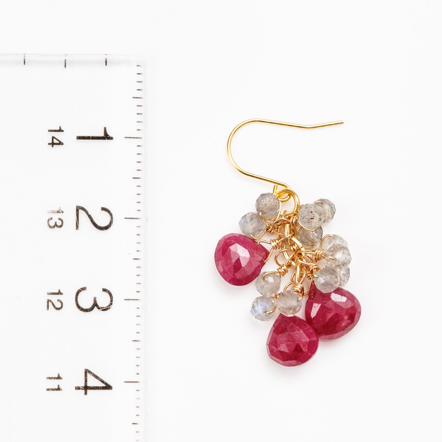 ナチュラルカラーのルビーとラブラドライトの耳飾りです。