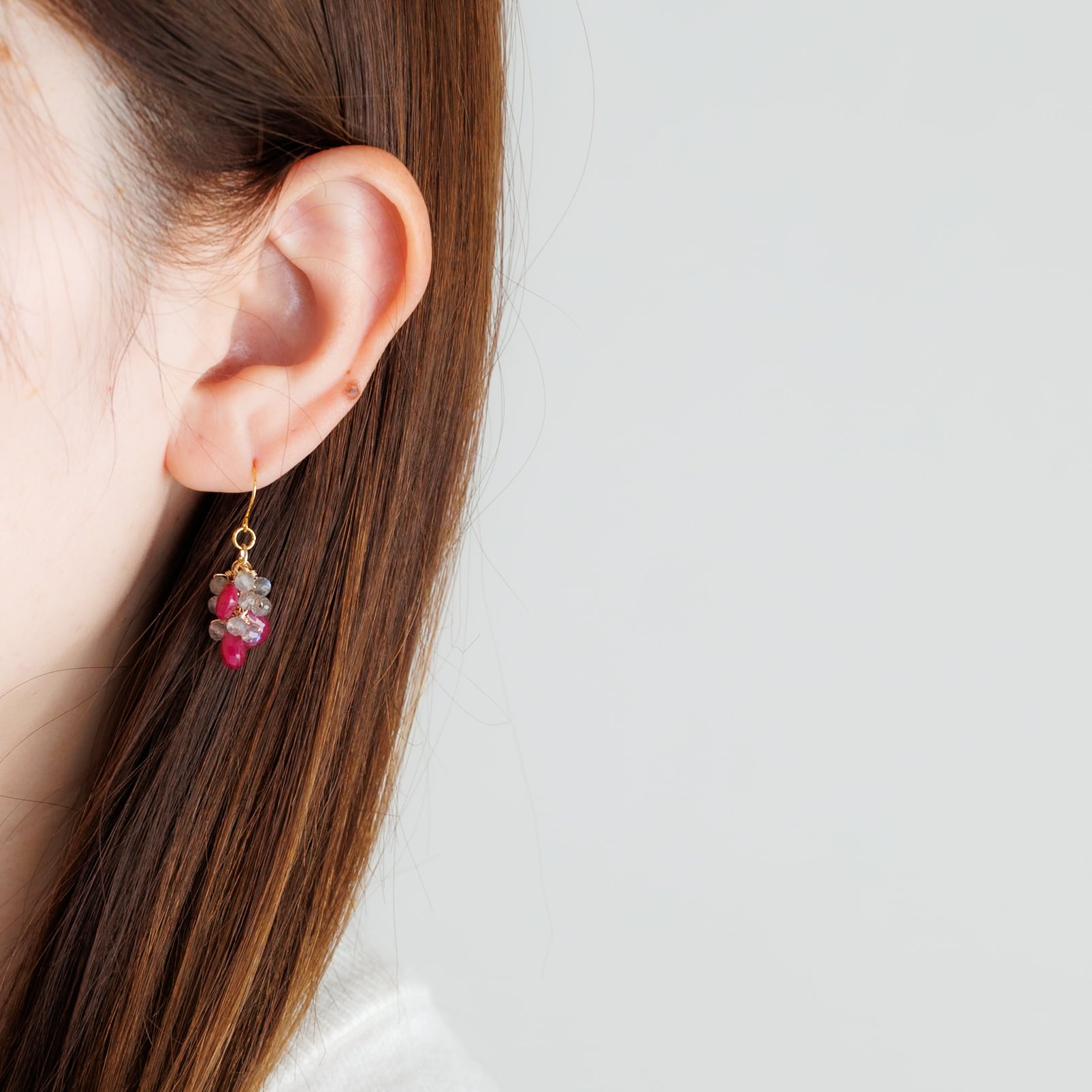 【高品質】天然石ルビーとラブラドライトの「戯れ」ピアス 一点もの