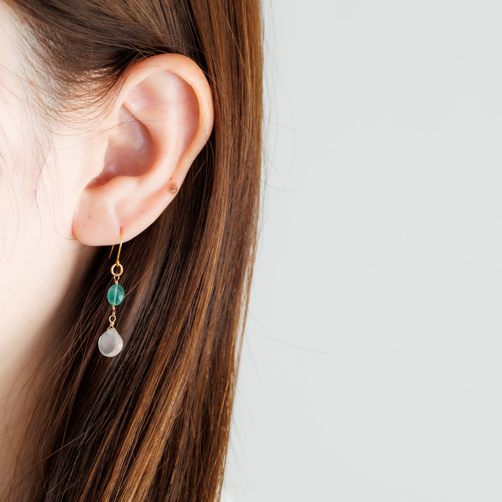 ザンビア産エメラルドとセイロンムーンストーンのピアス