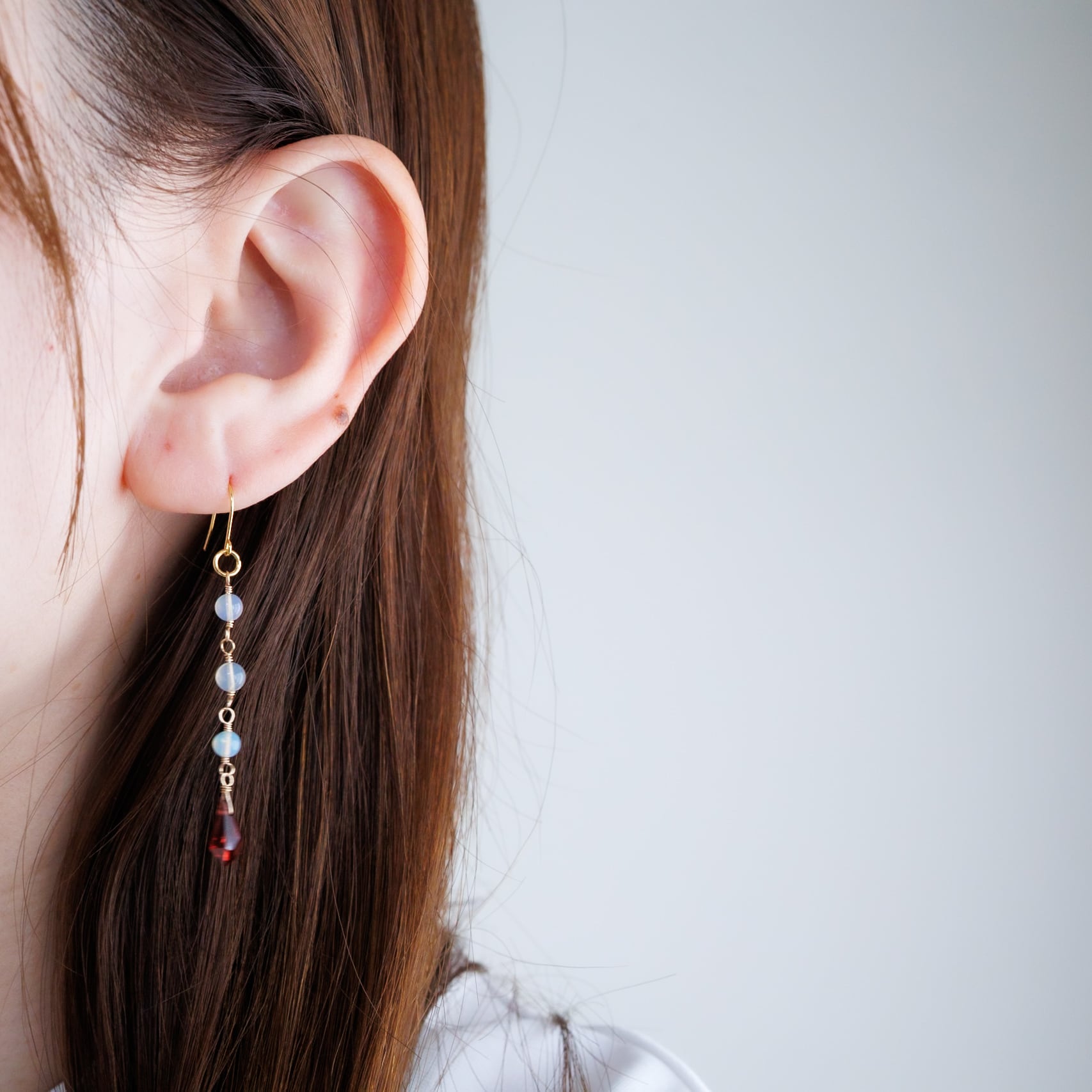 オパールとガーネットの縦長ラインのピアス サージカルステンレス 14kgf