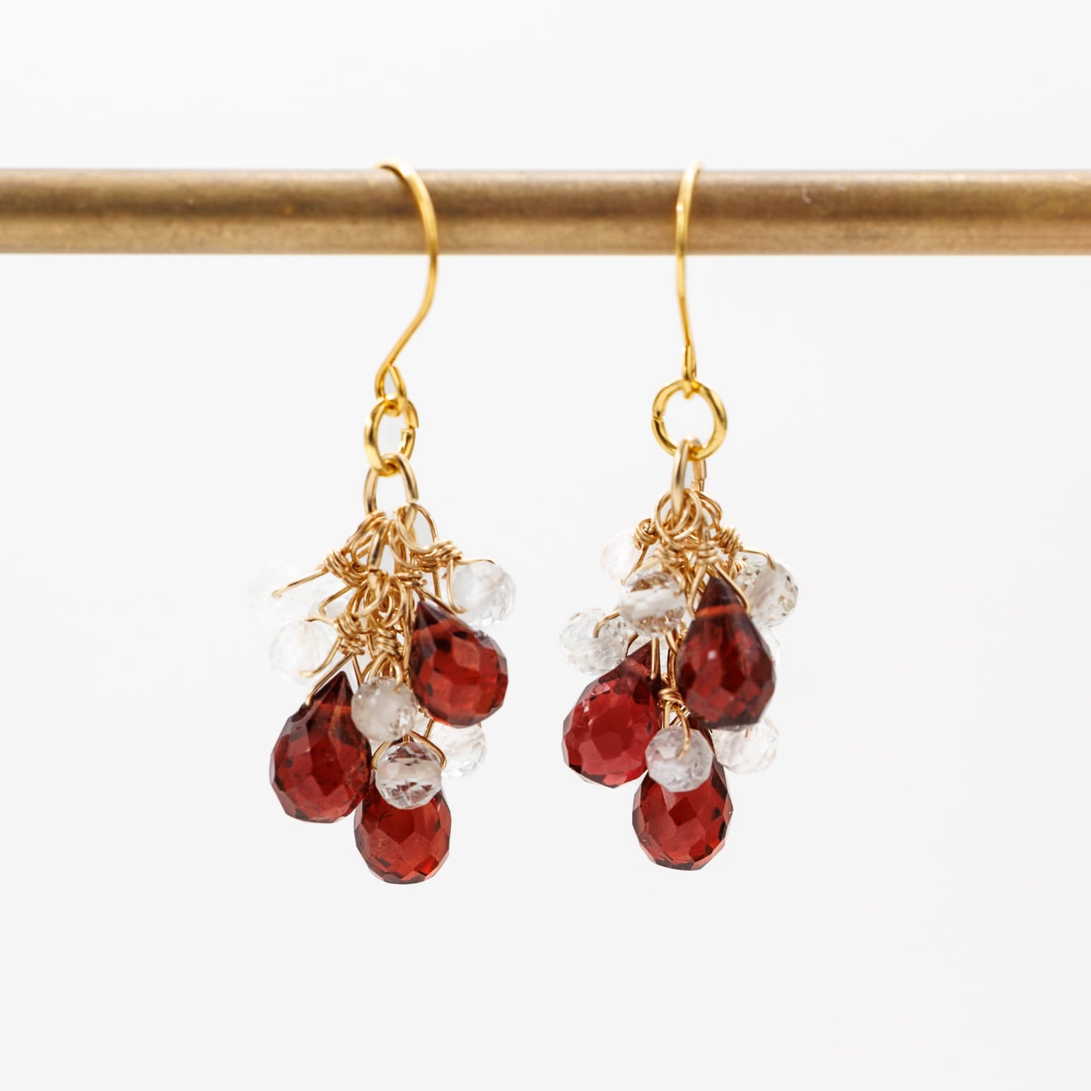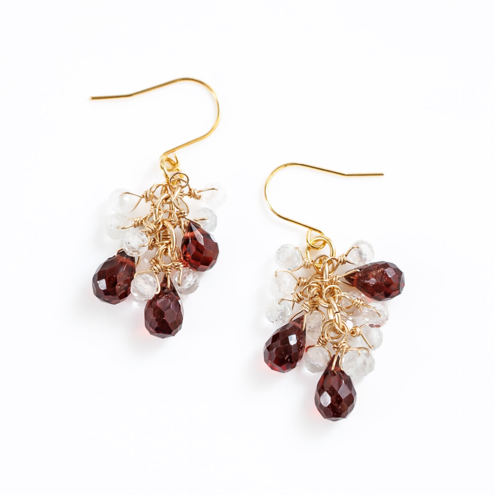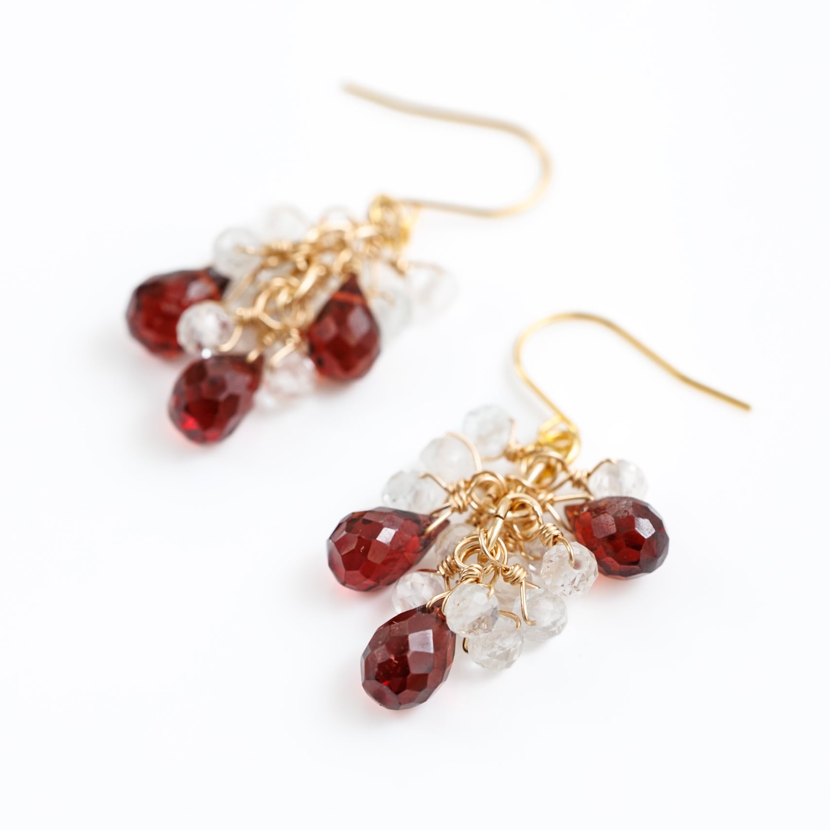【一点もの】ガーネットとホワイトトパーズのピアス 戯れシリーズ