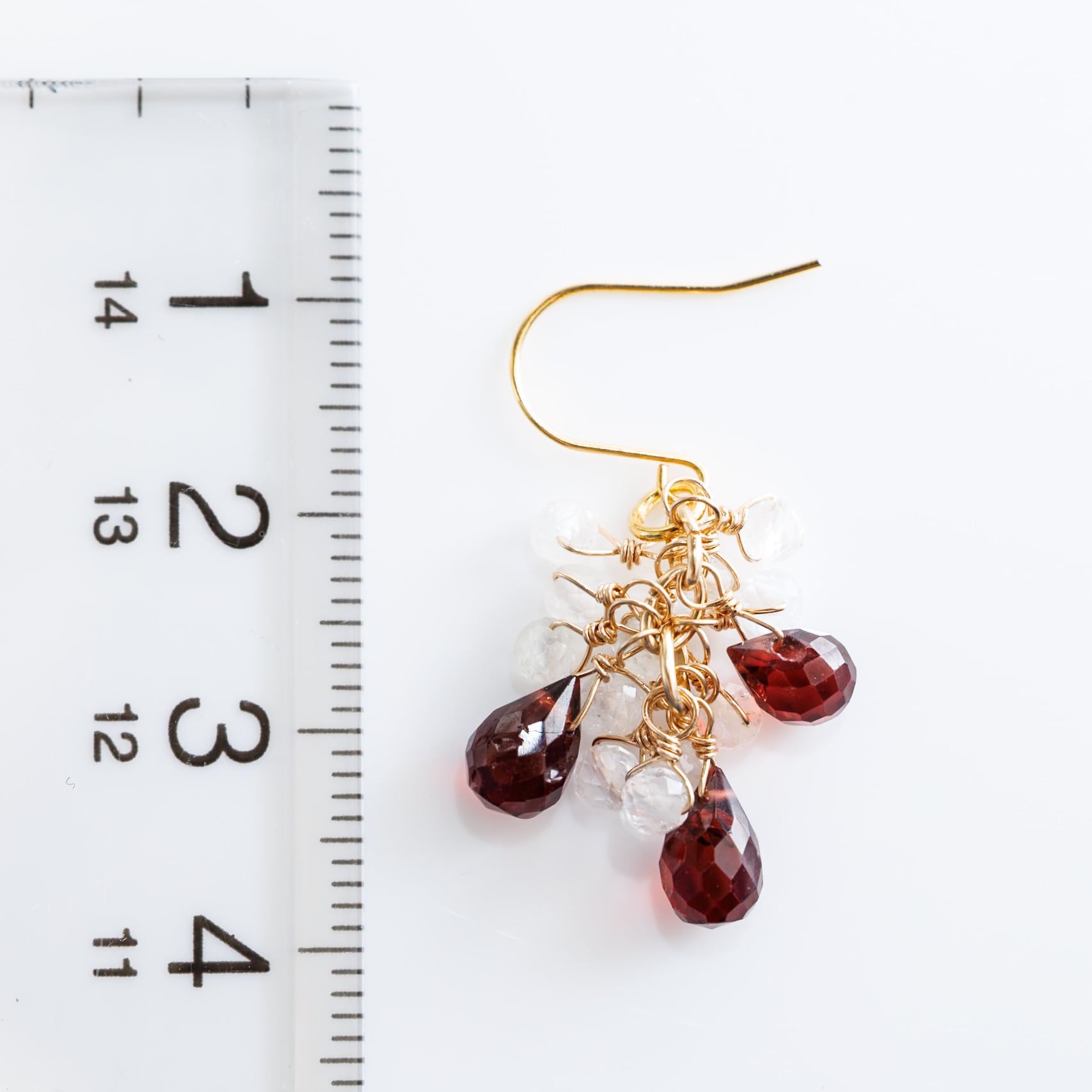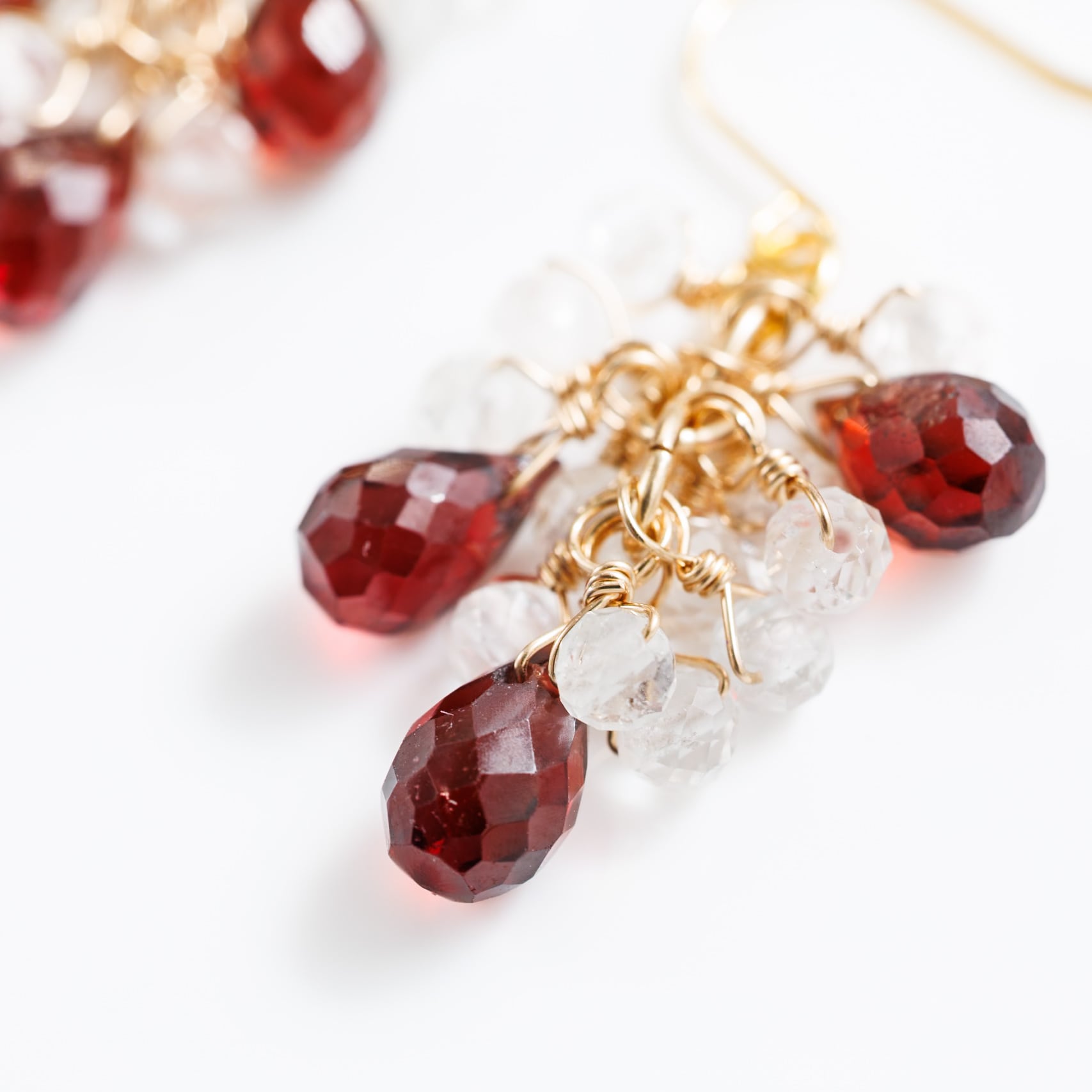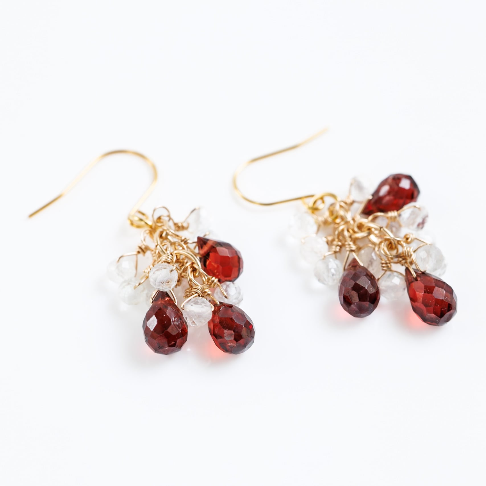 【一点もの】ガーネットとホワイトトパーズのピアス 戯れシリーズ