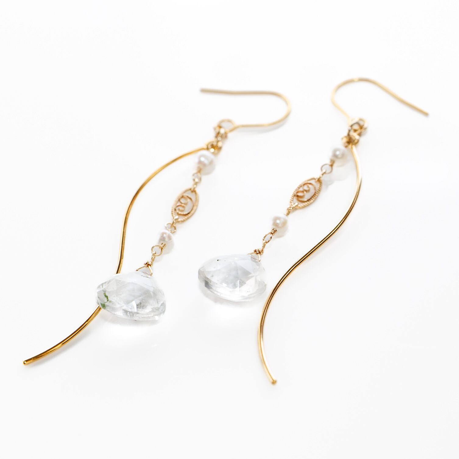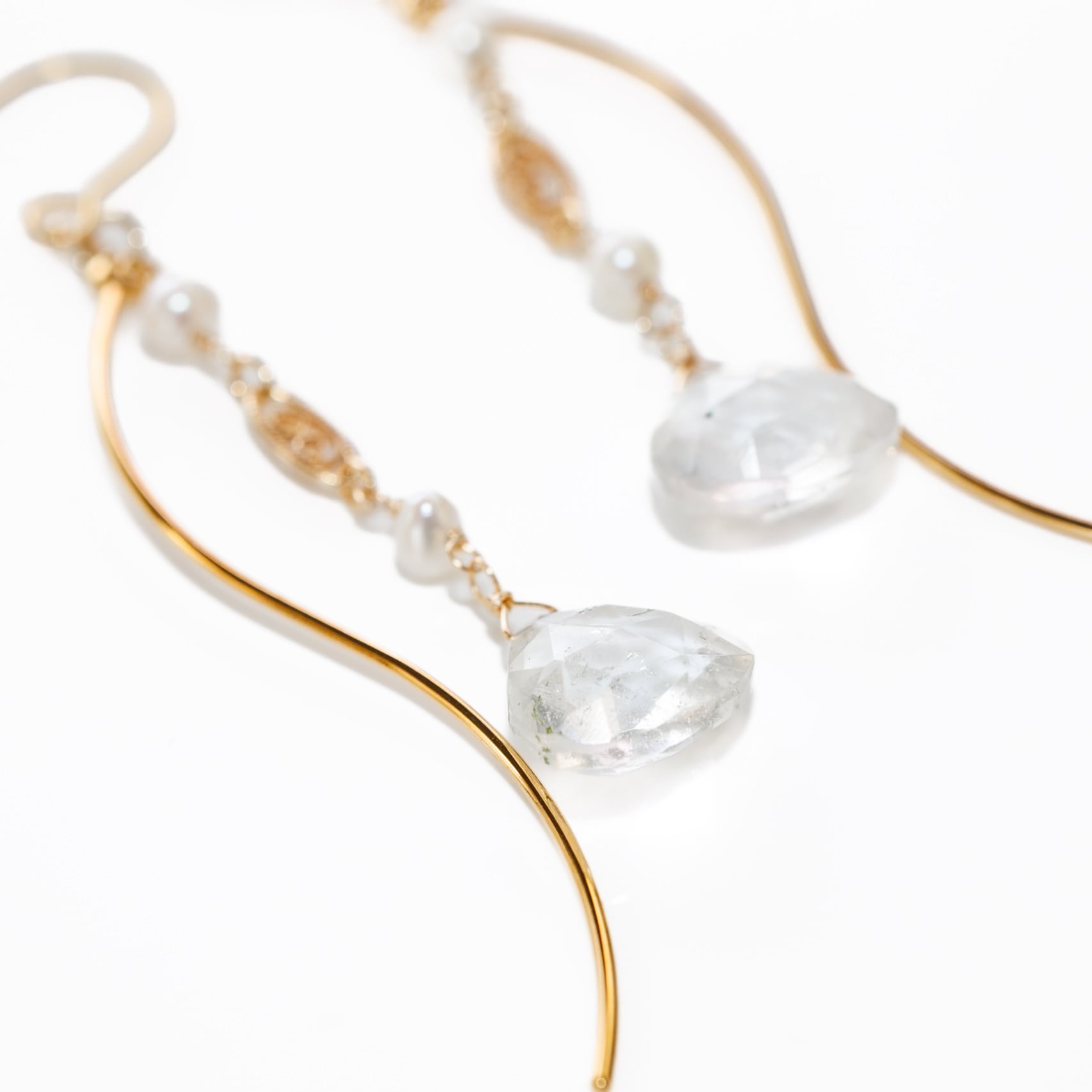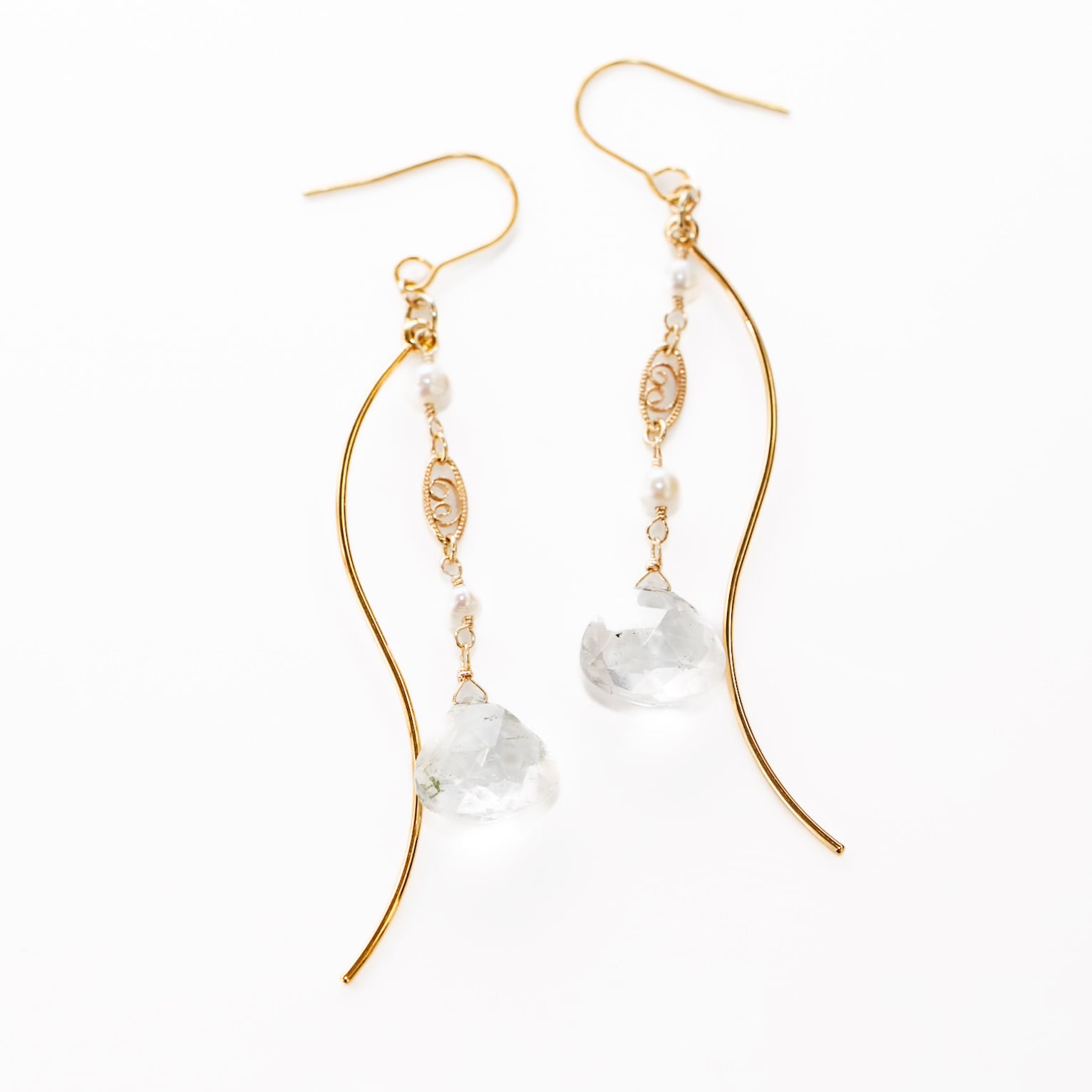 透明を綴る マニハール水晶と淡水パールのロングピアス