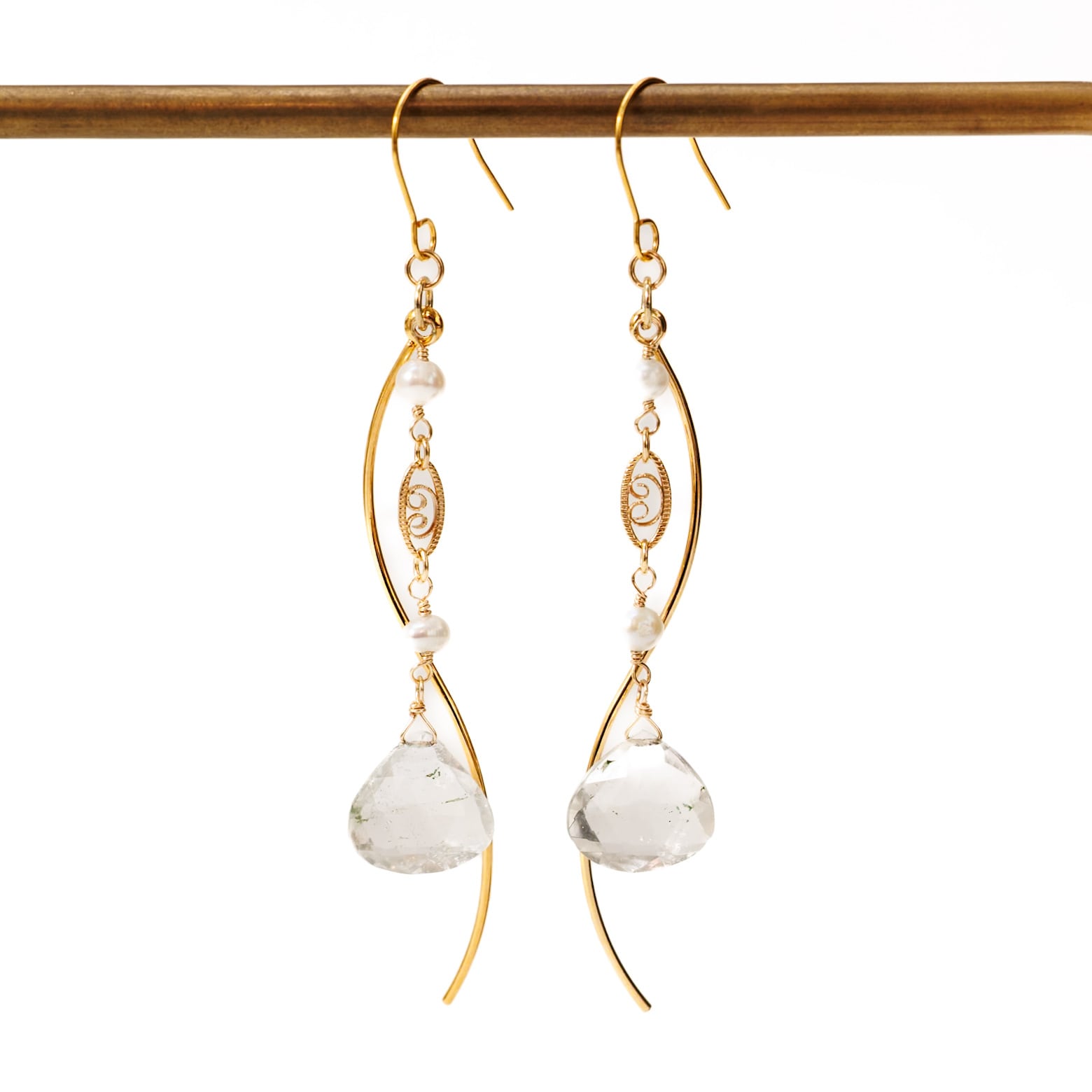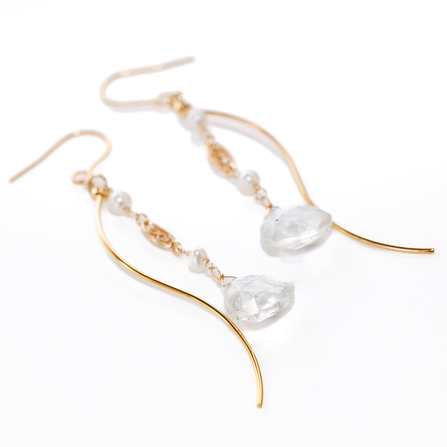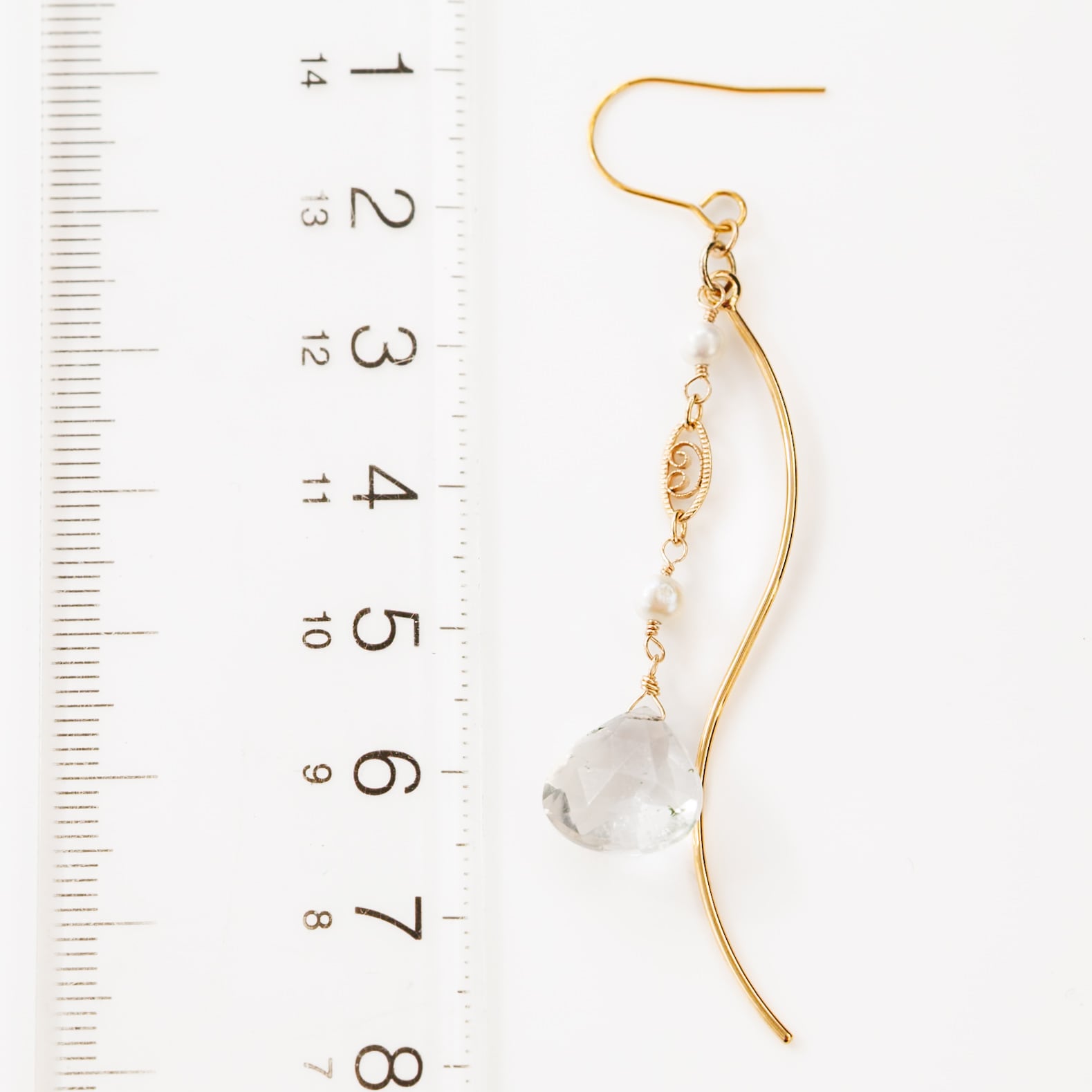 透明を綴る マニハール水晶と淡水パールのロングピアス