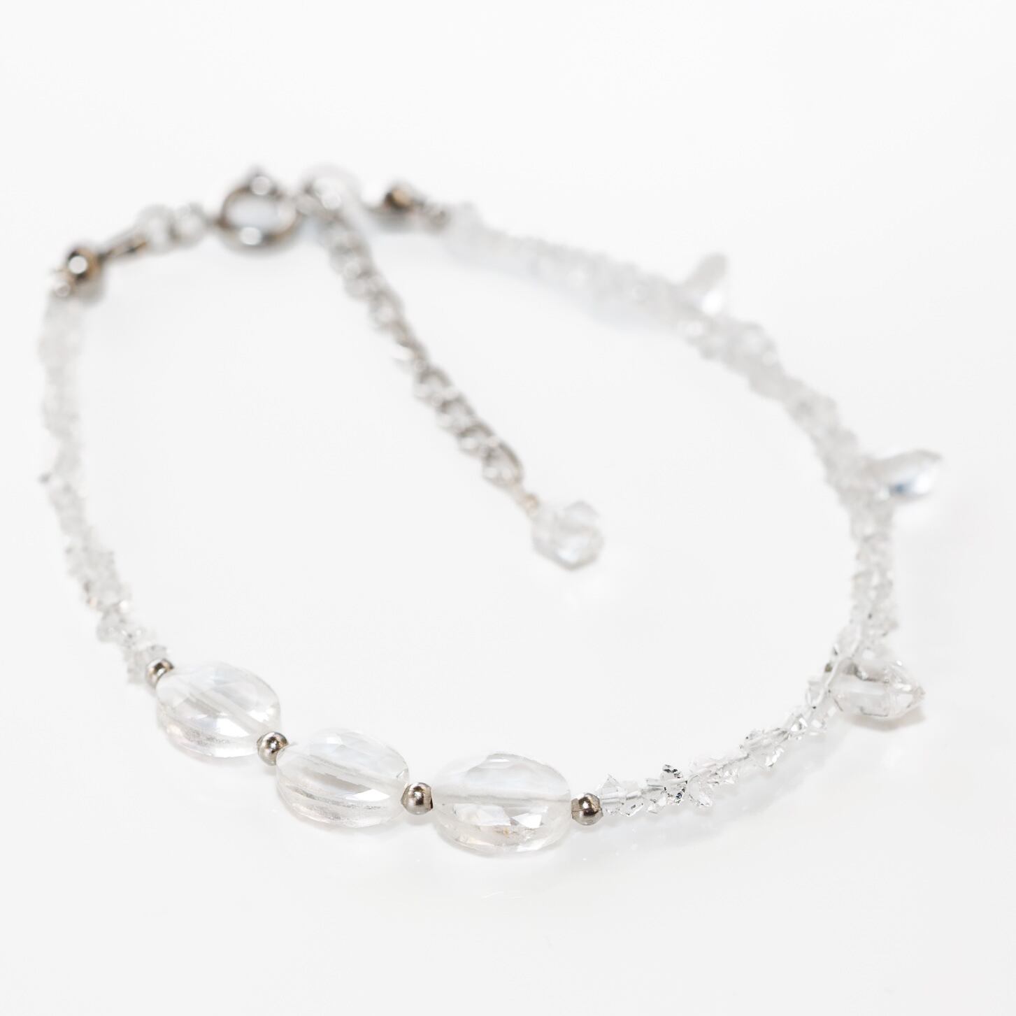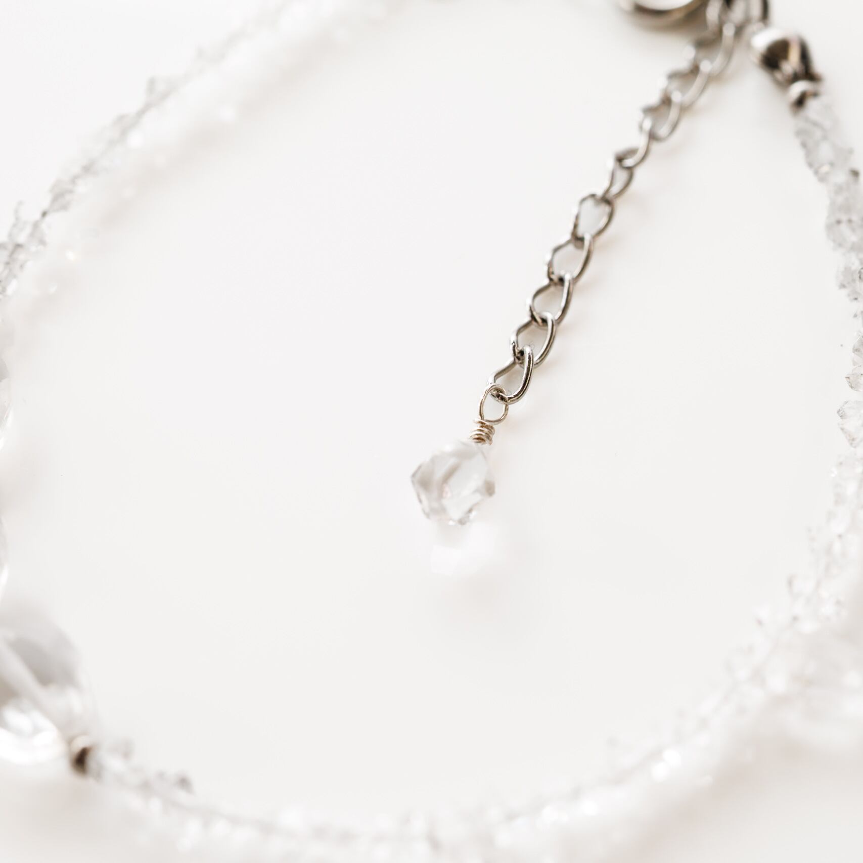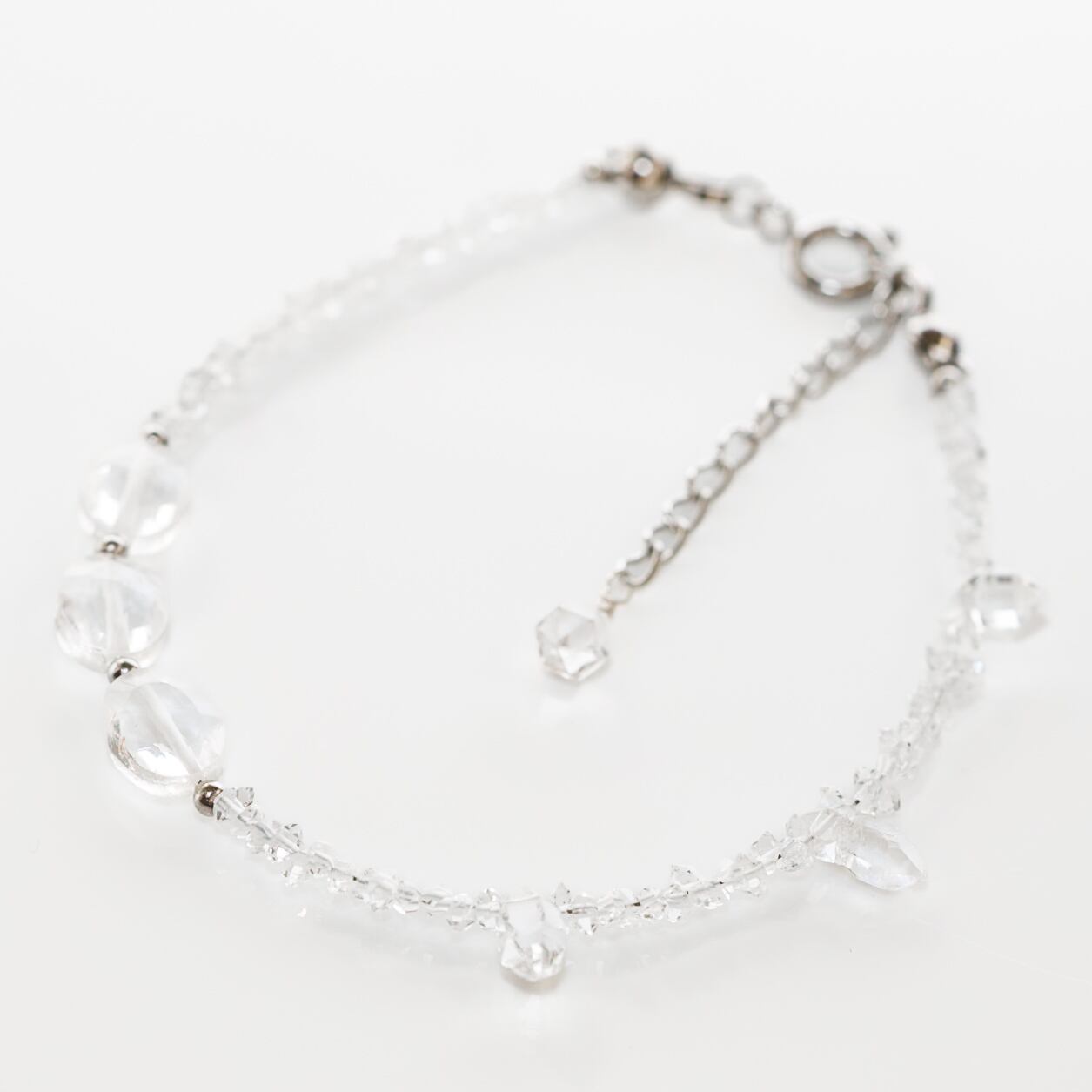 水晶とパーキマーダイヤモンドを組み合わせた透明感あふれるブレスレットです。