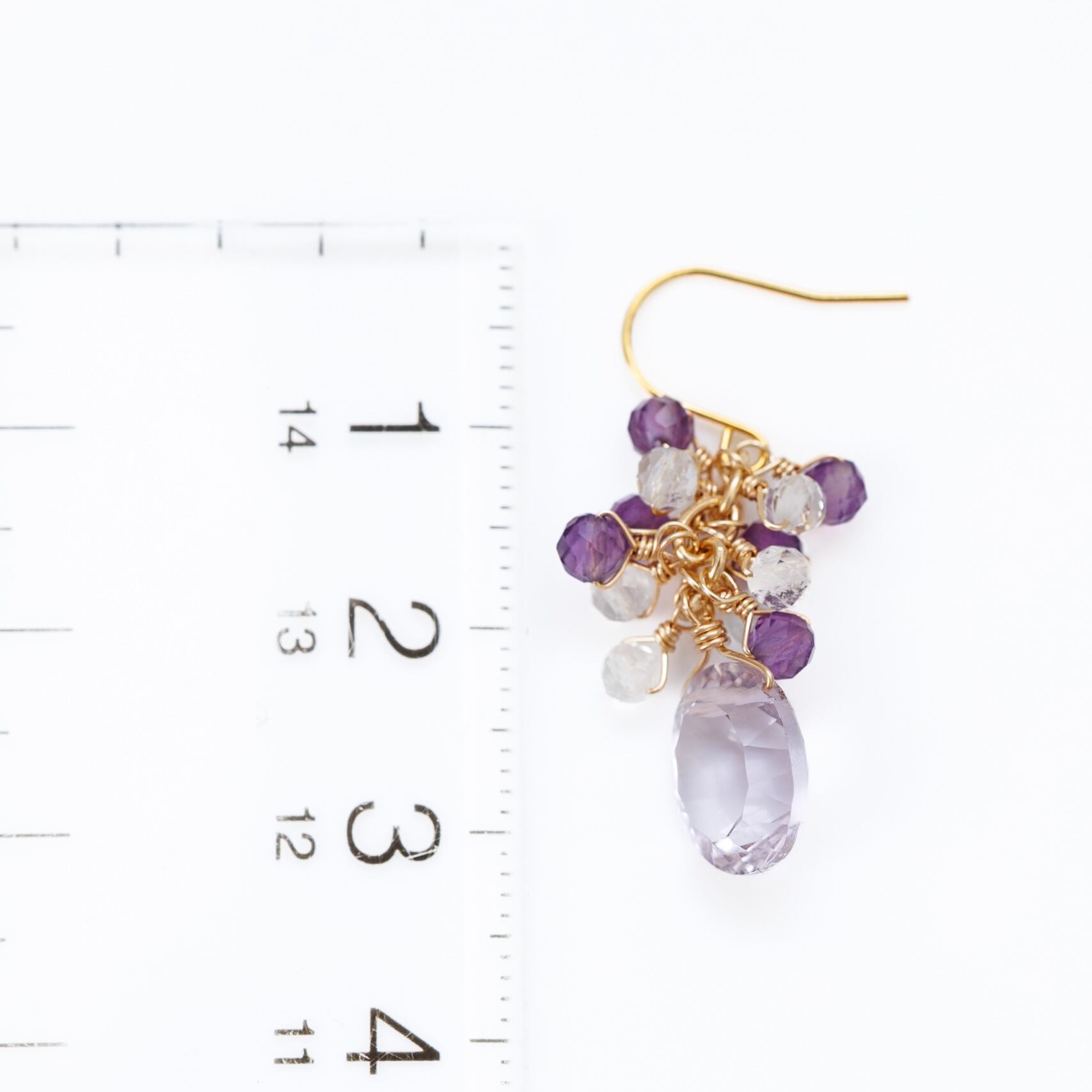 ラベンダーアメシストとアメシスト、ホワイトトパーズのピアス ― さり気ない紫と透明感 ―