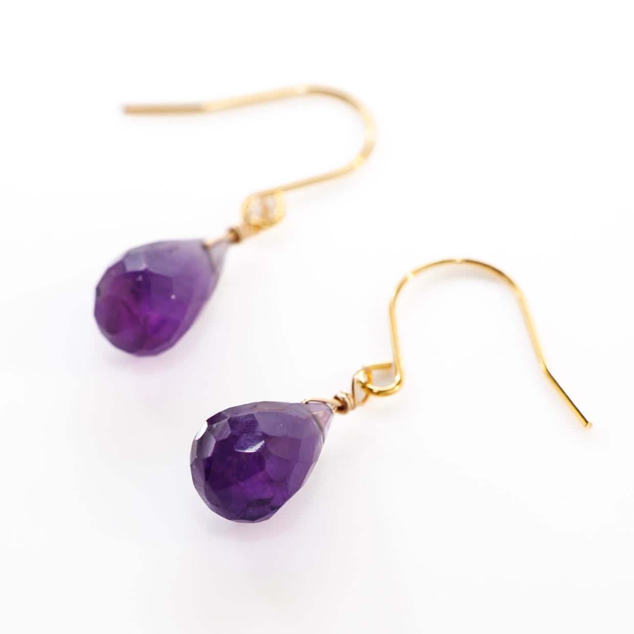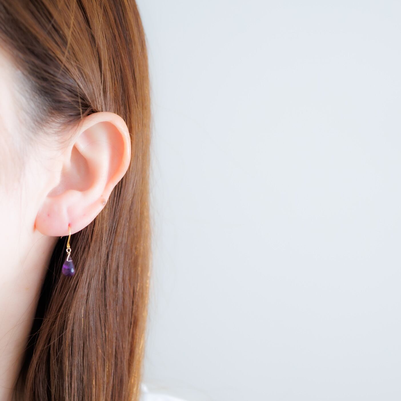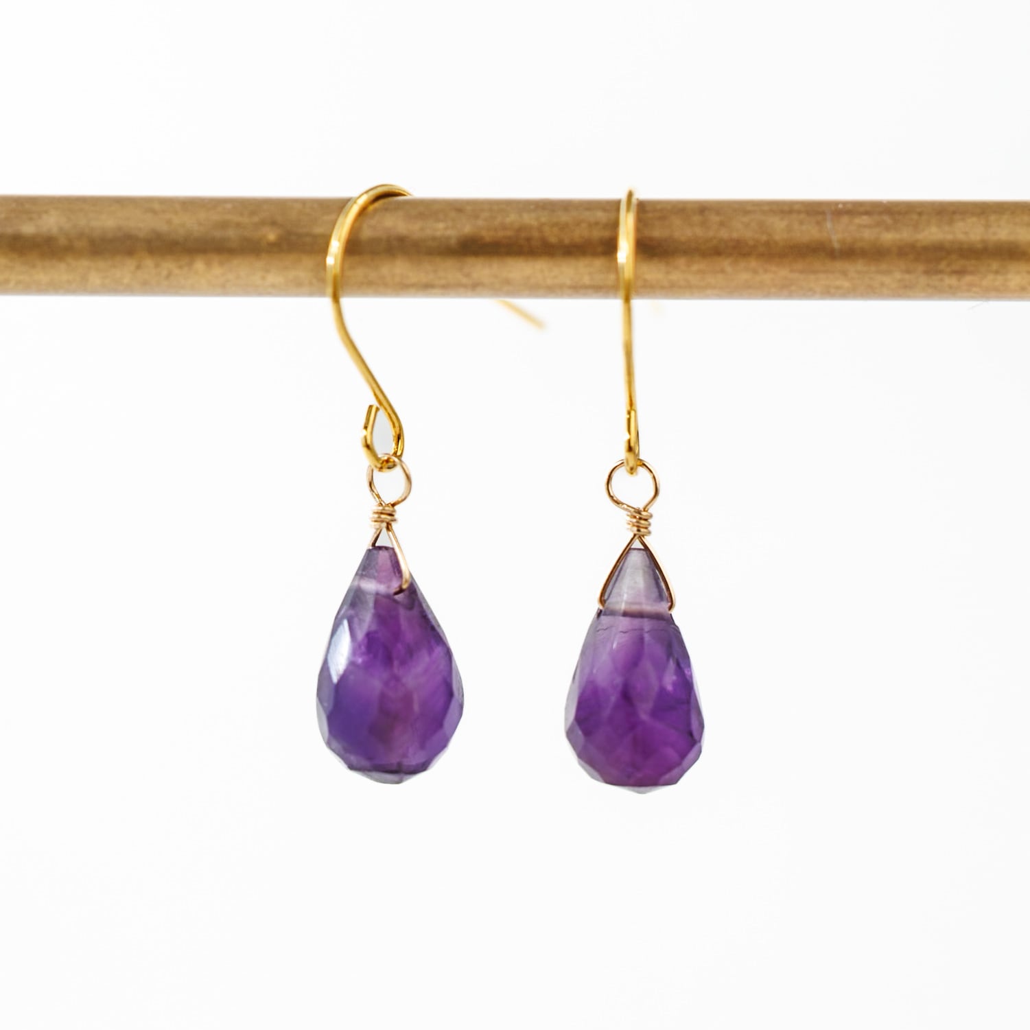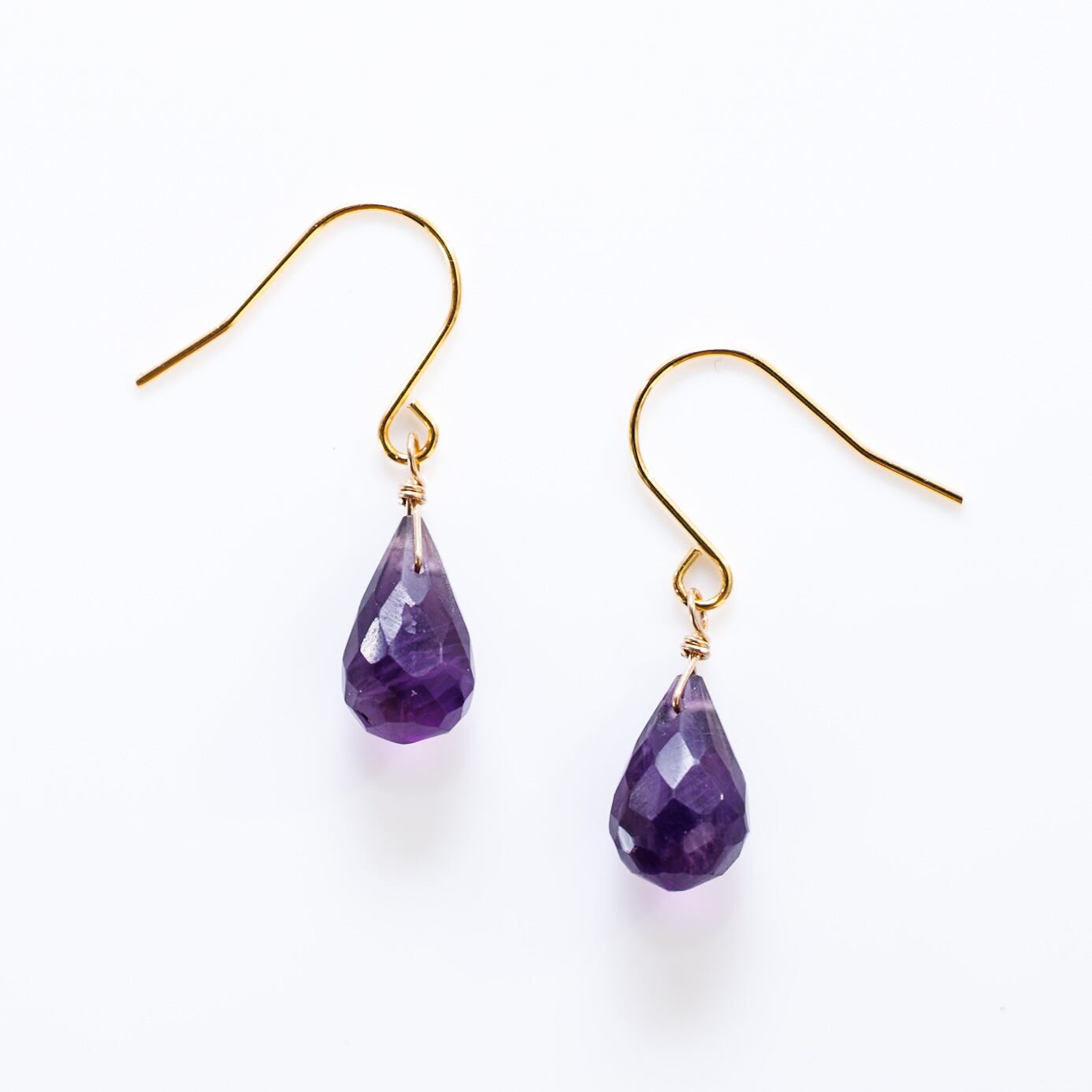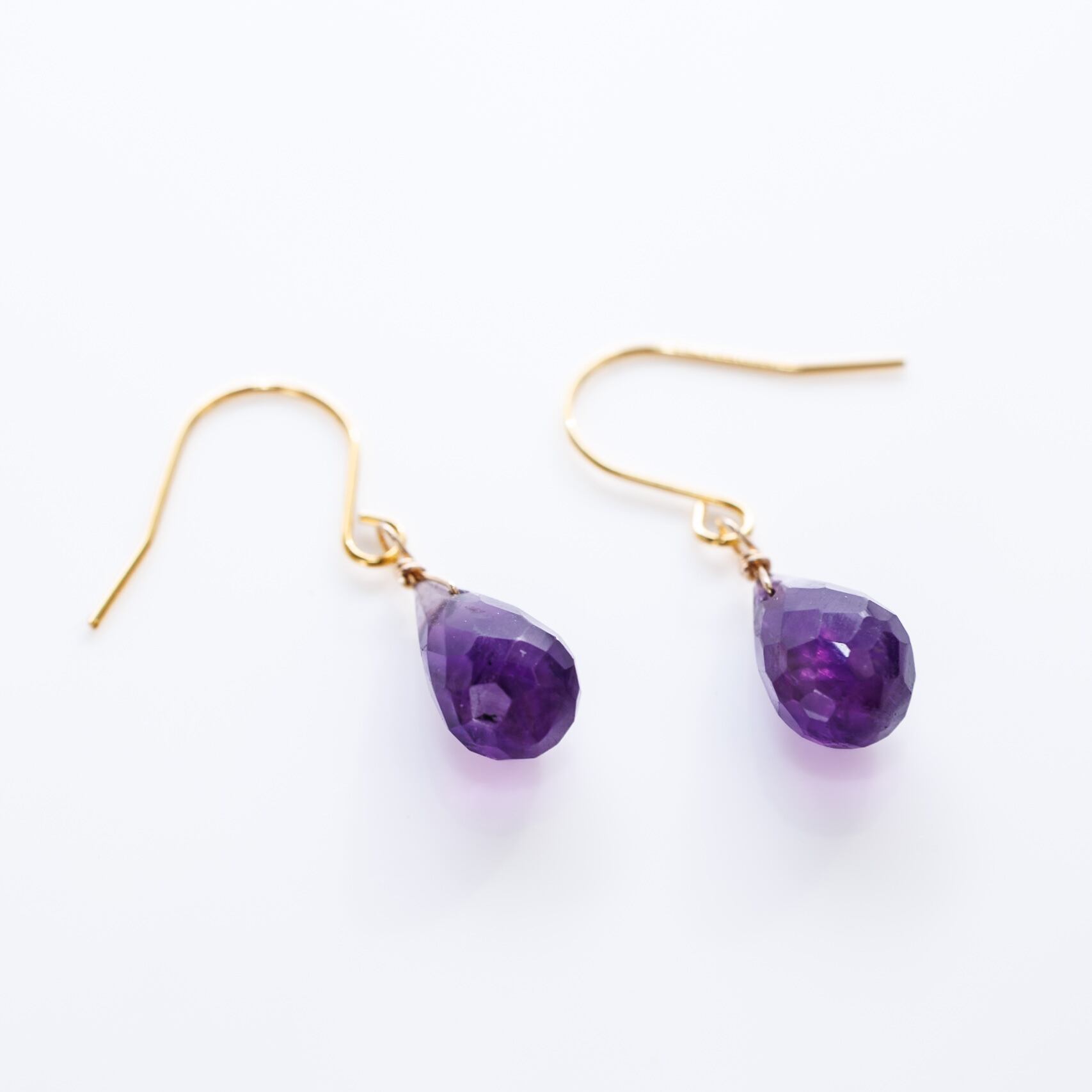 2月の誕生石、アメシストをシンプルに一粒あしらったピアスです。