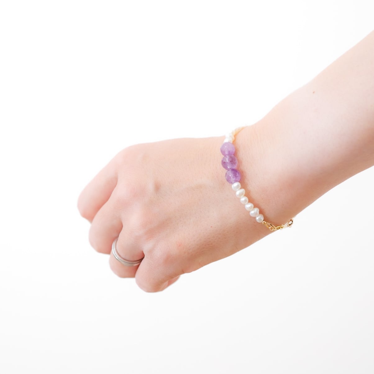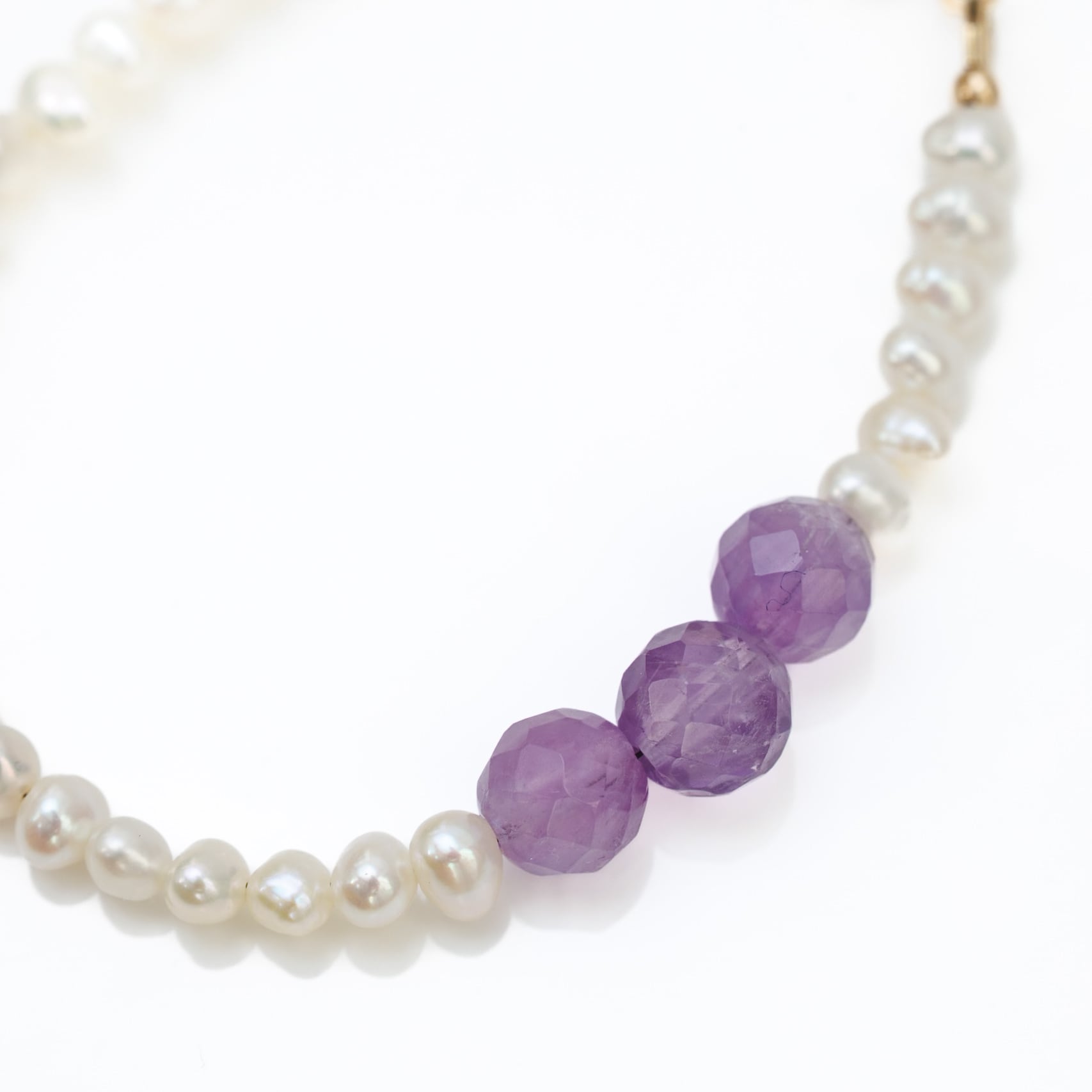 淡水パール×アメシストのブレスレット ― やさしいホワイトに紫が映えるひとしずく ―