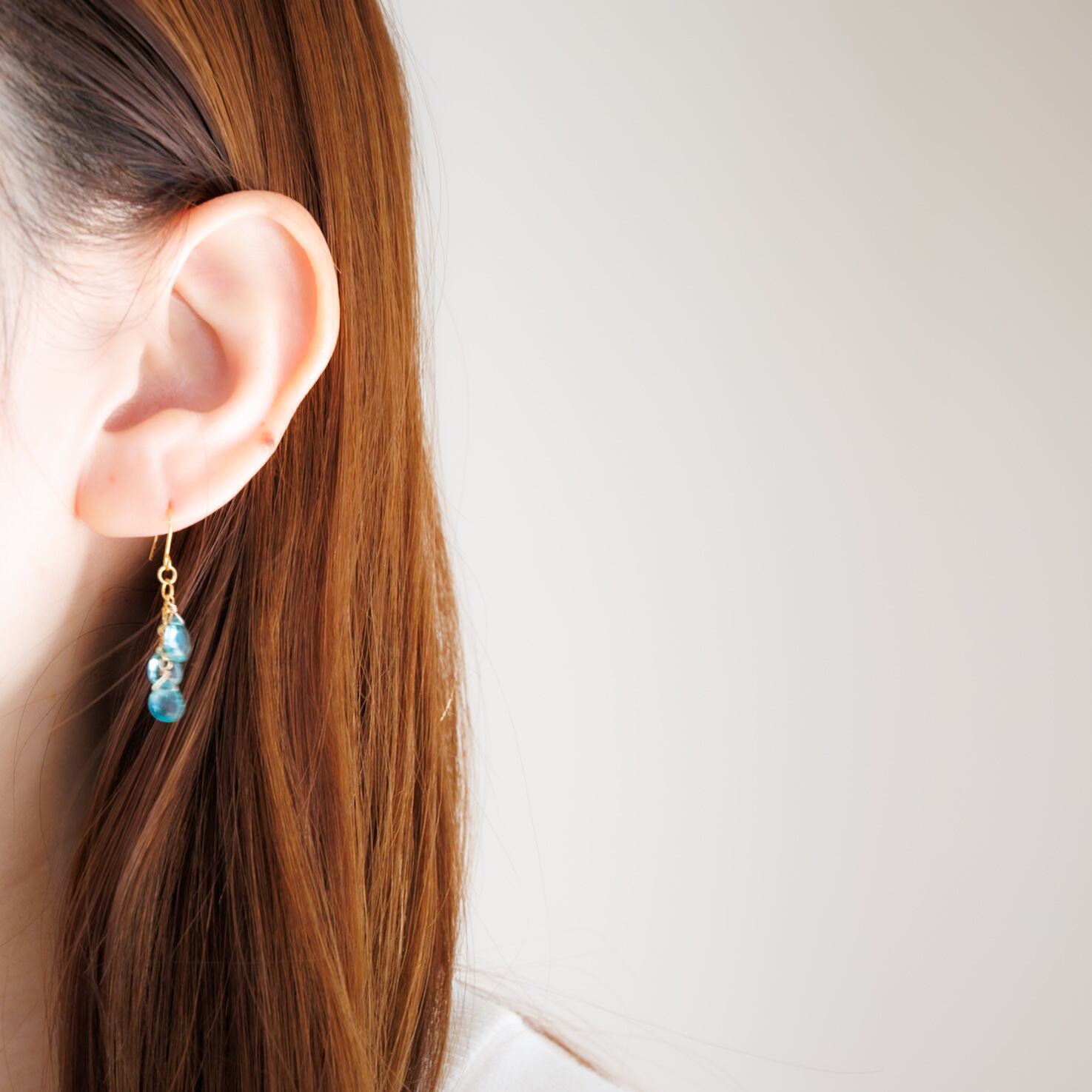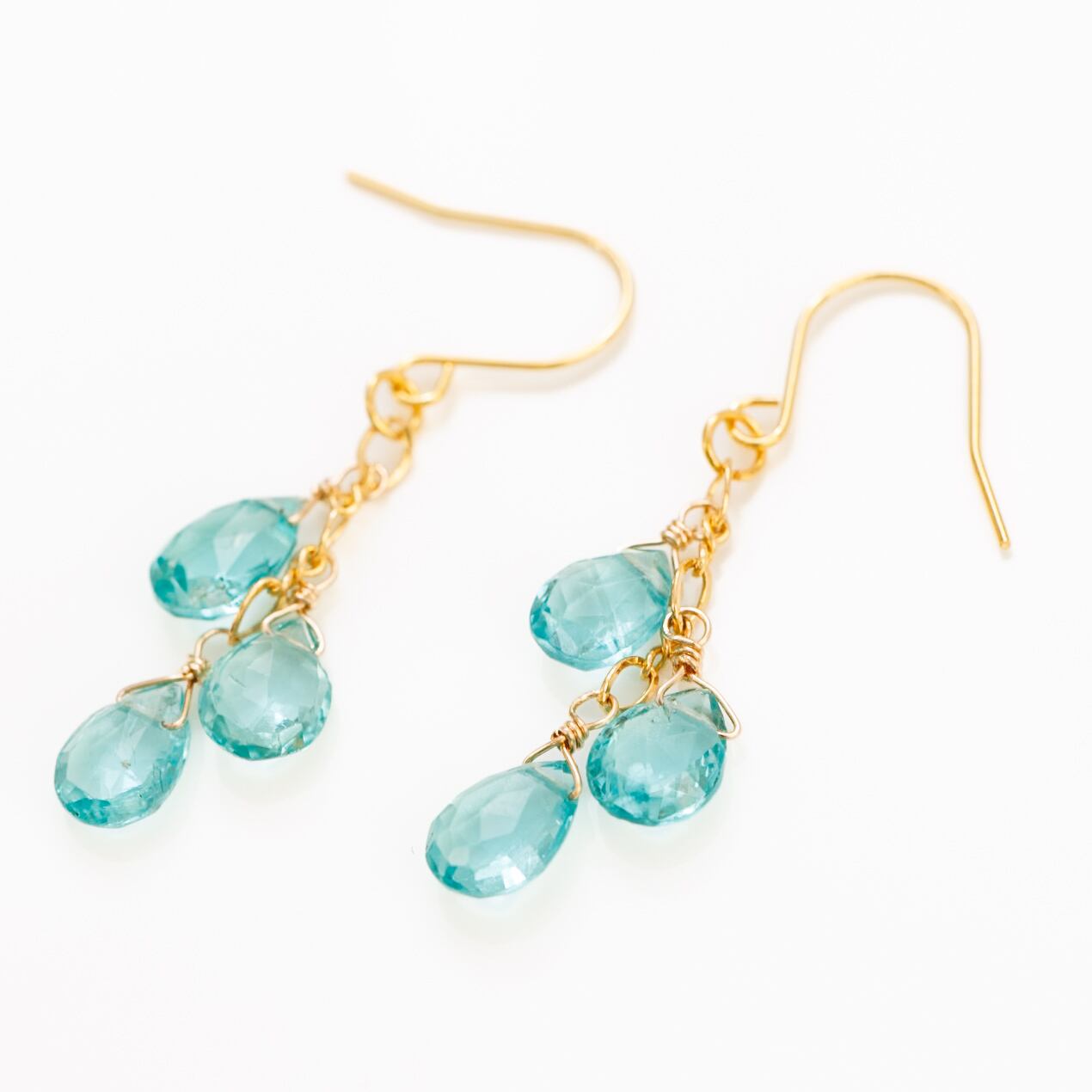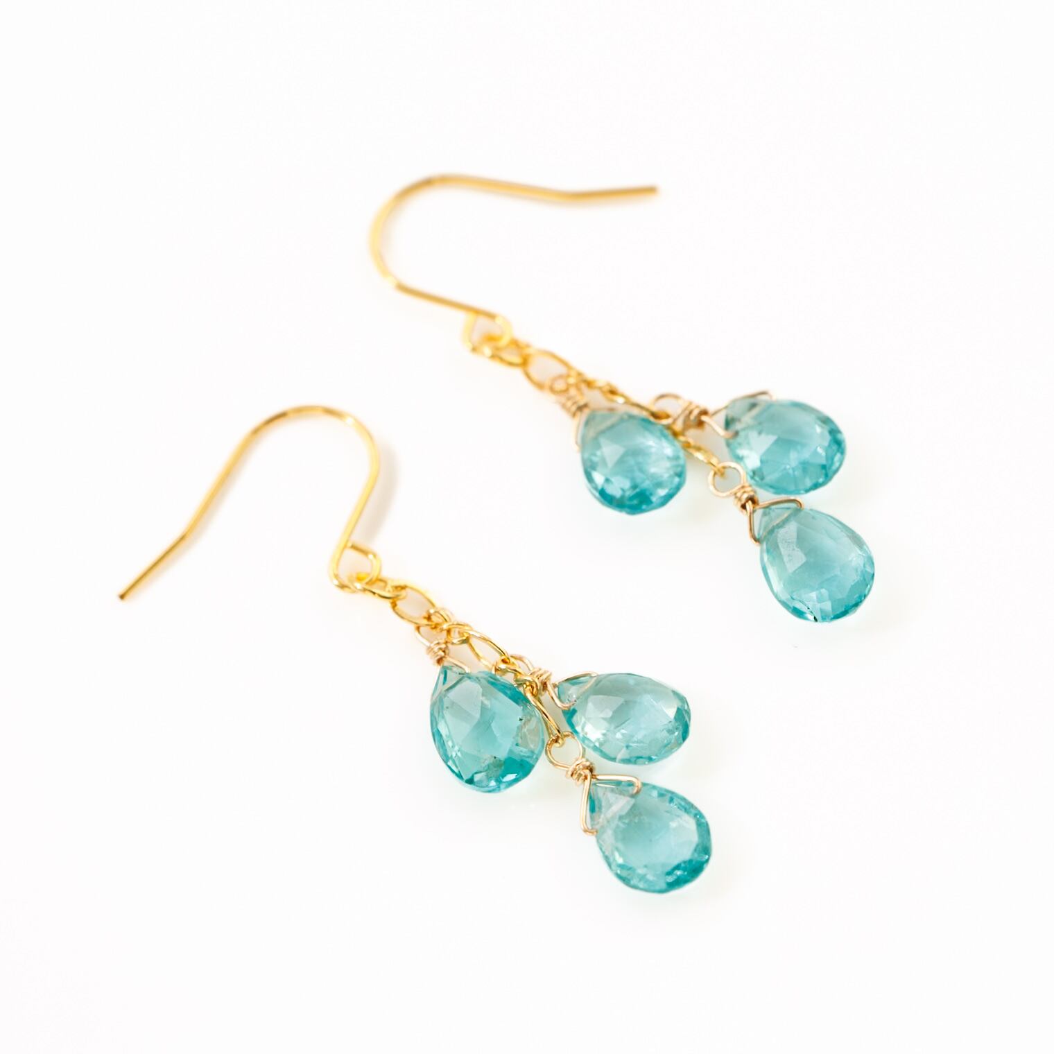澄んだブルーがより引き立つようあえてシンプルに、アパタイトを3粒しゃらしゃらと揺れるデザインにしました。