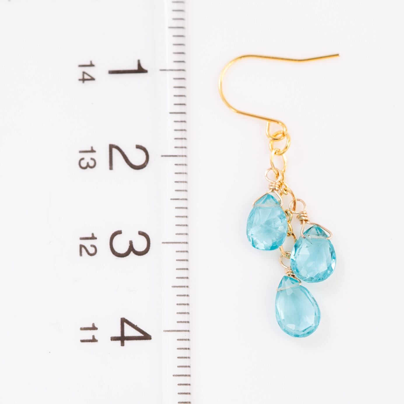 心奪われた、透明ブルーのアパタイト 3粒しゃらしゃらピアス
