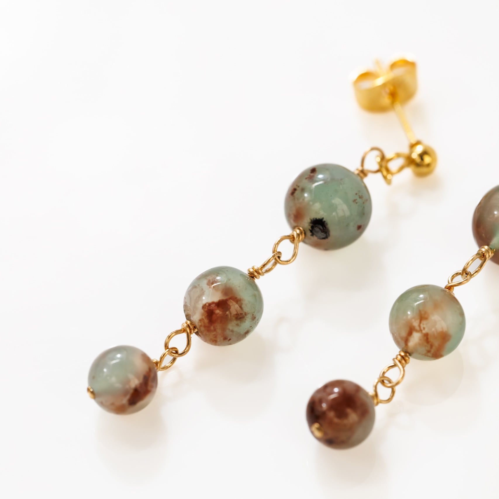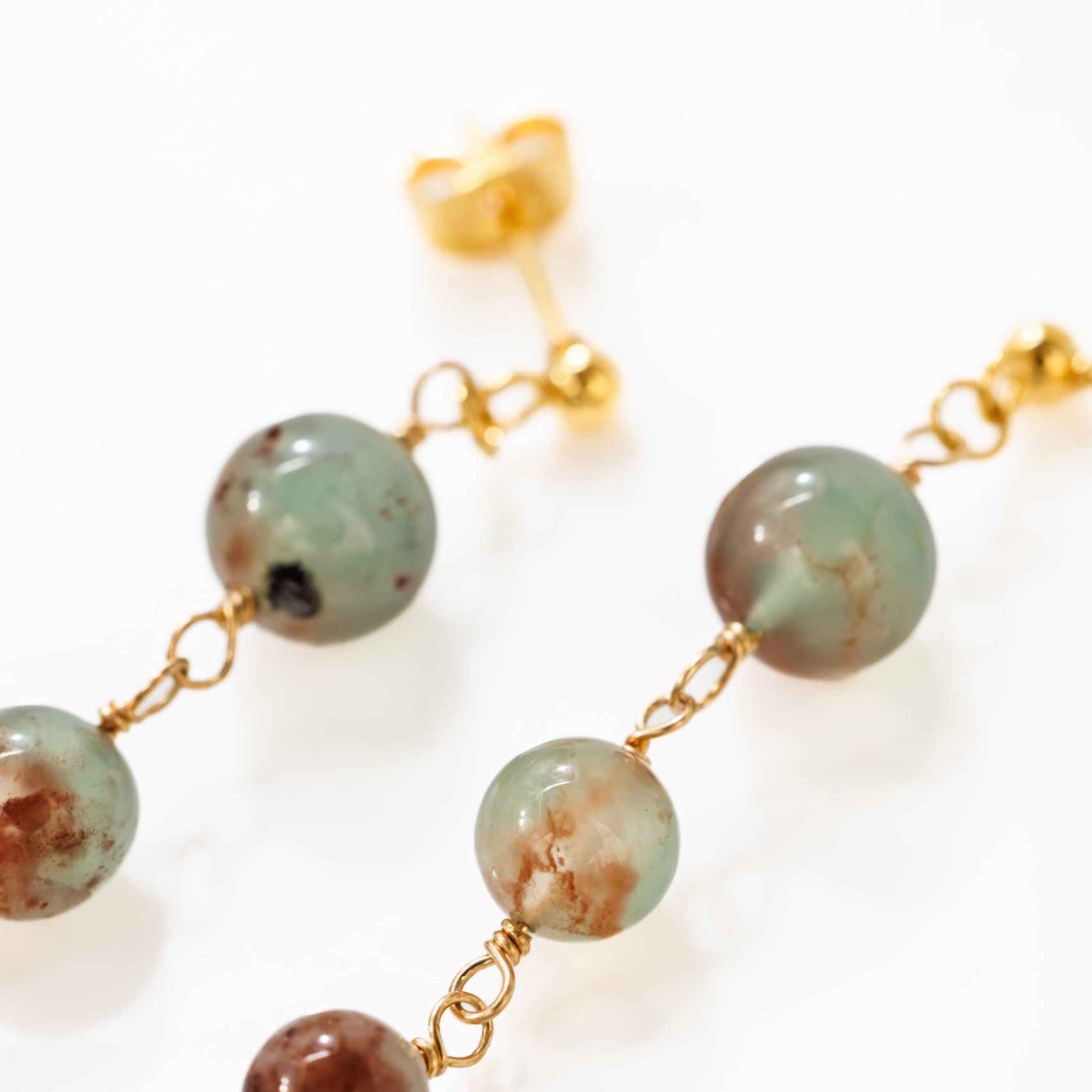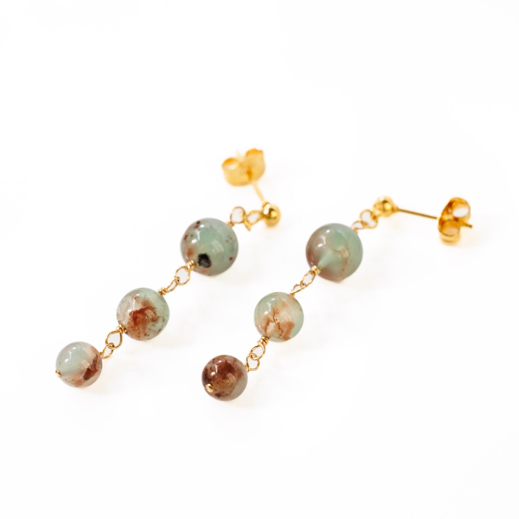グリーンのアクアプレーズ ピアス 世界に一つの天然石