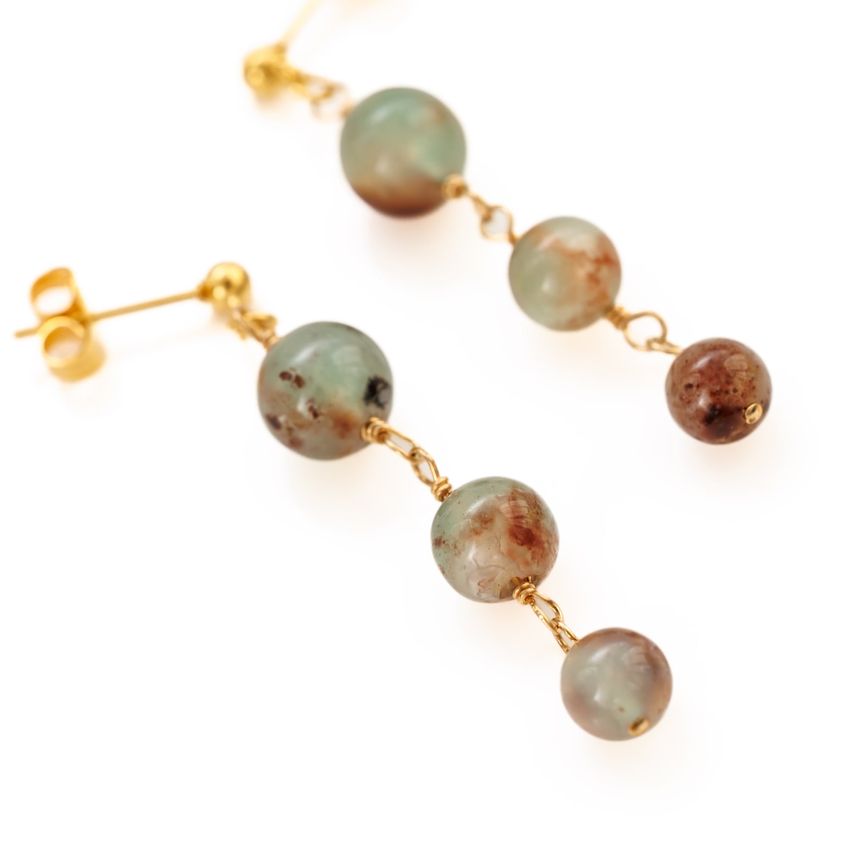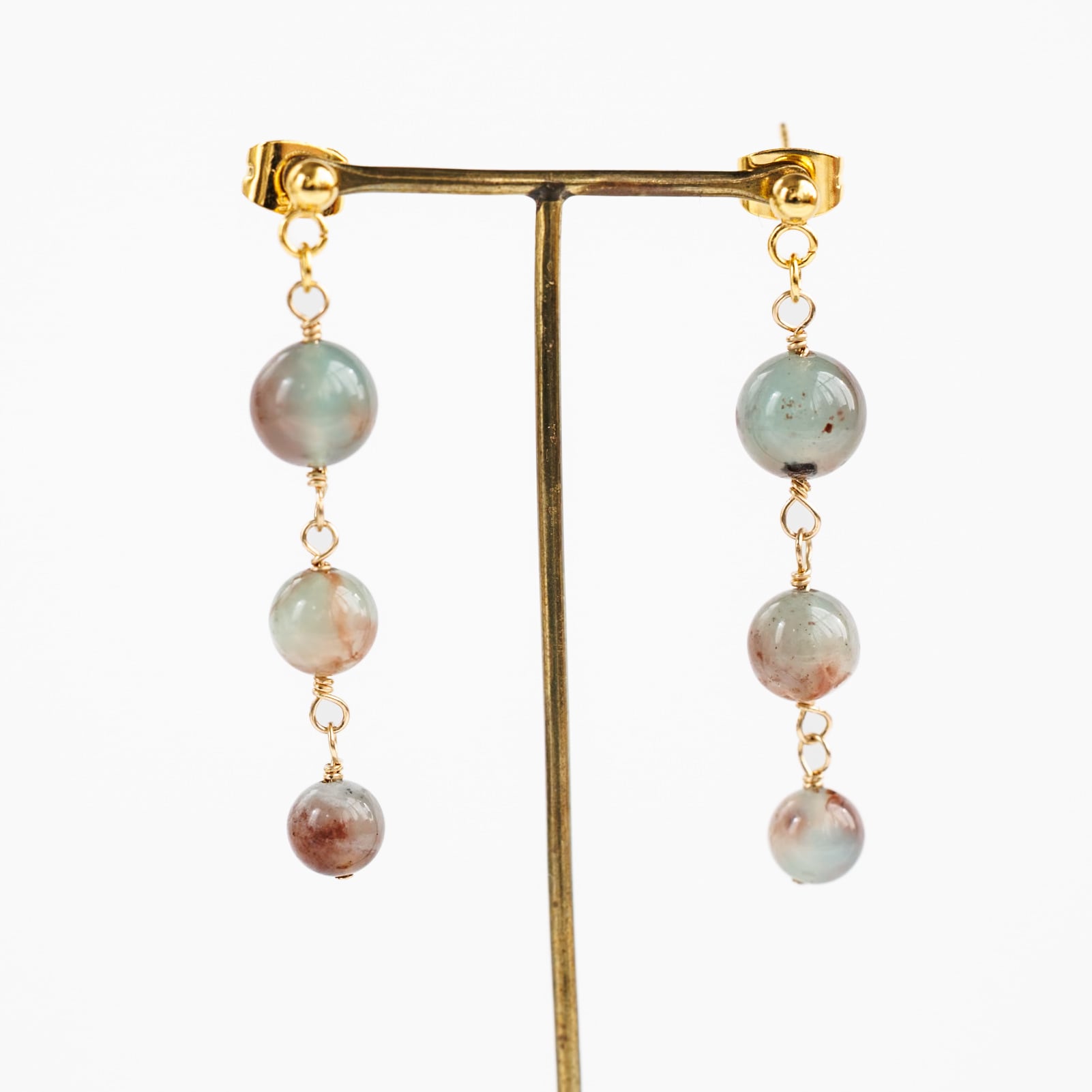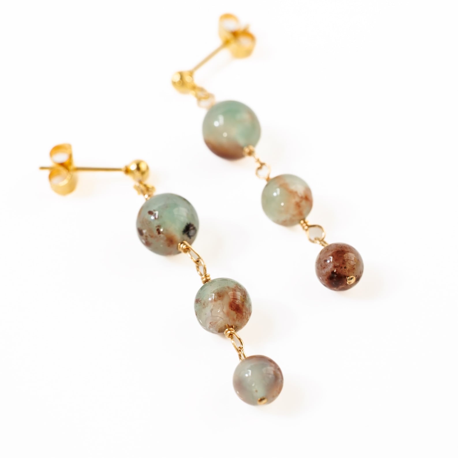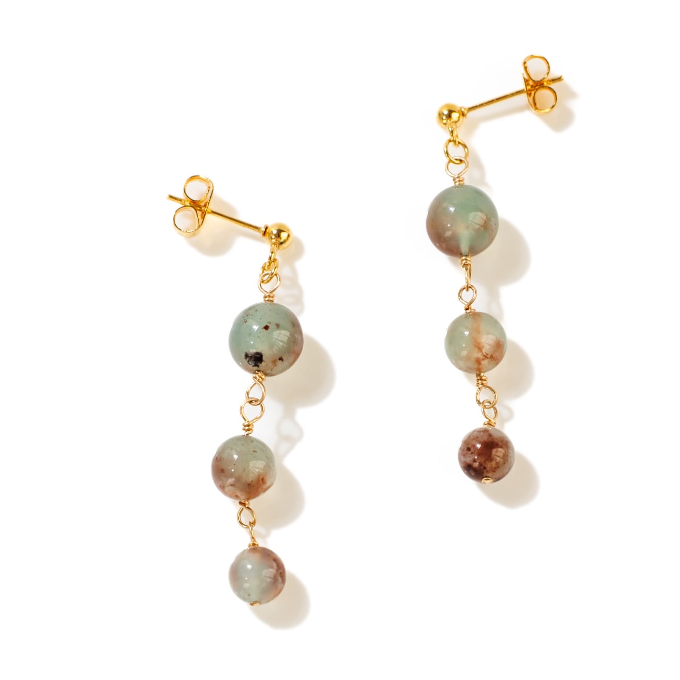 グリーンのアクアプレーズ ピアス 世界に一つの天然石