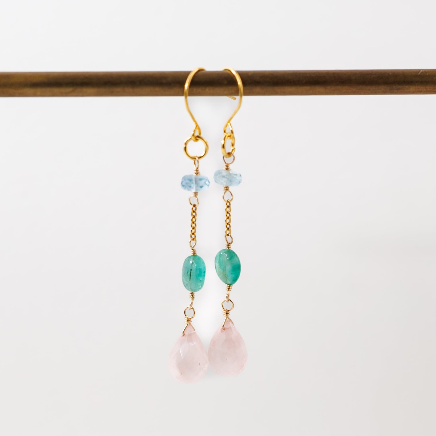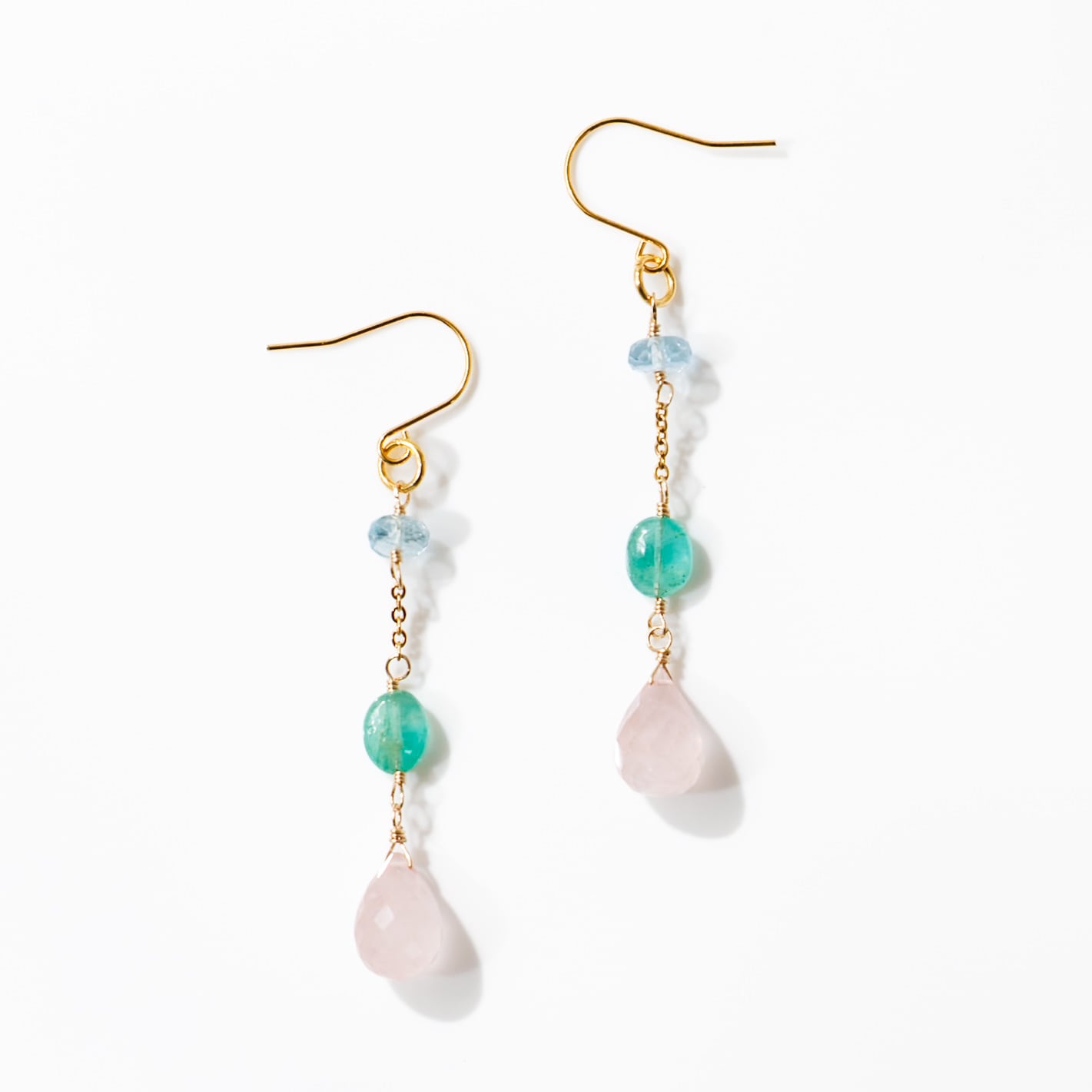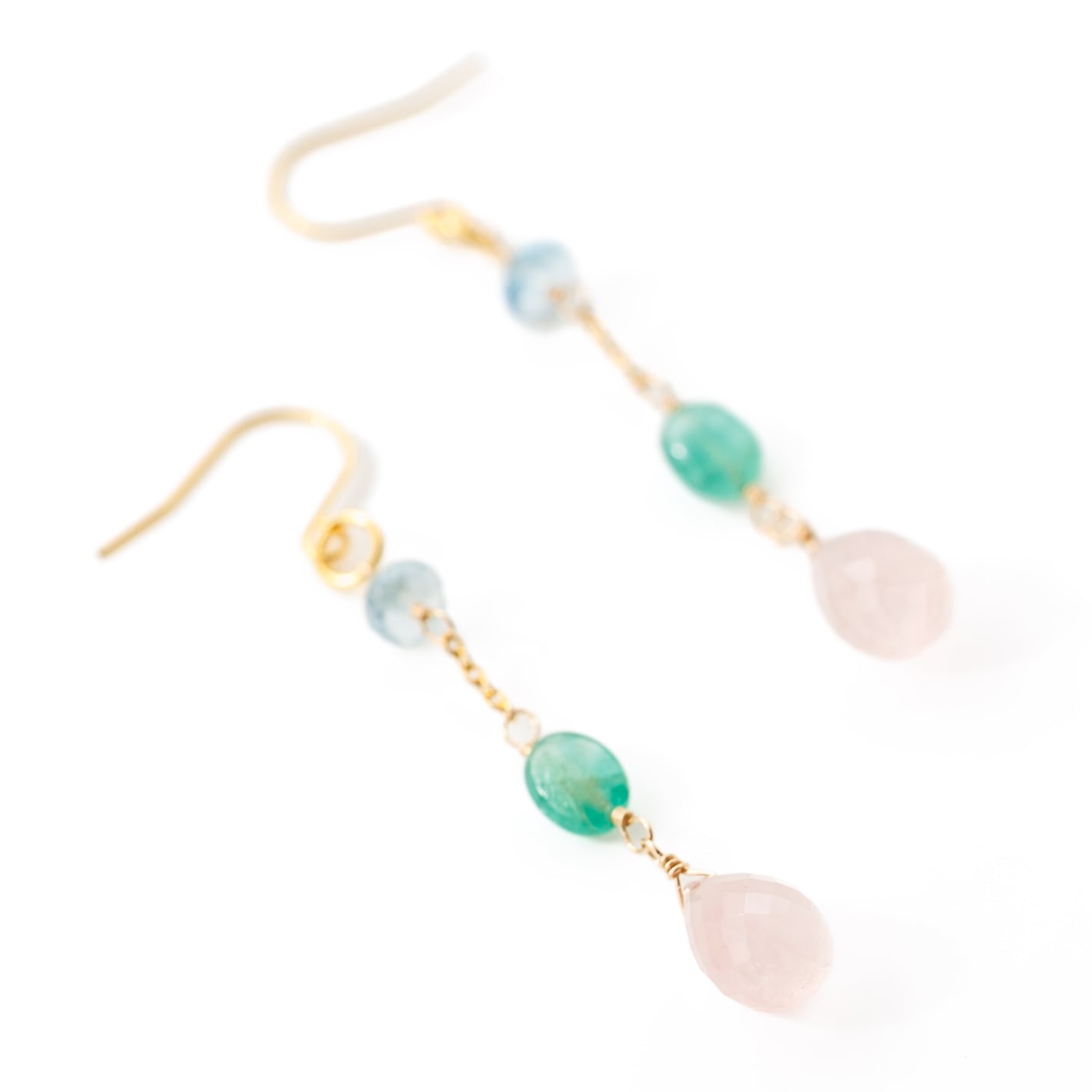 アクアマリン エメラルド モルガナイトのピアス ― ベリルが奏でる、やさしい色のグラデーション ―