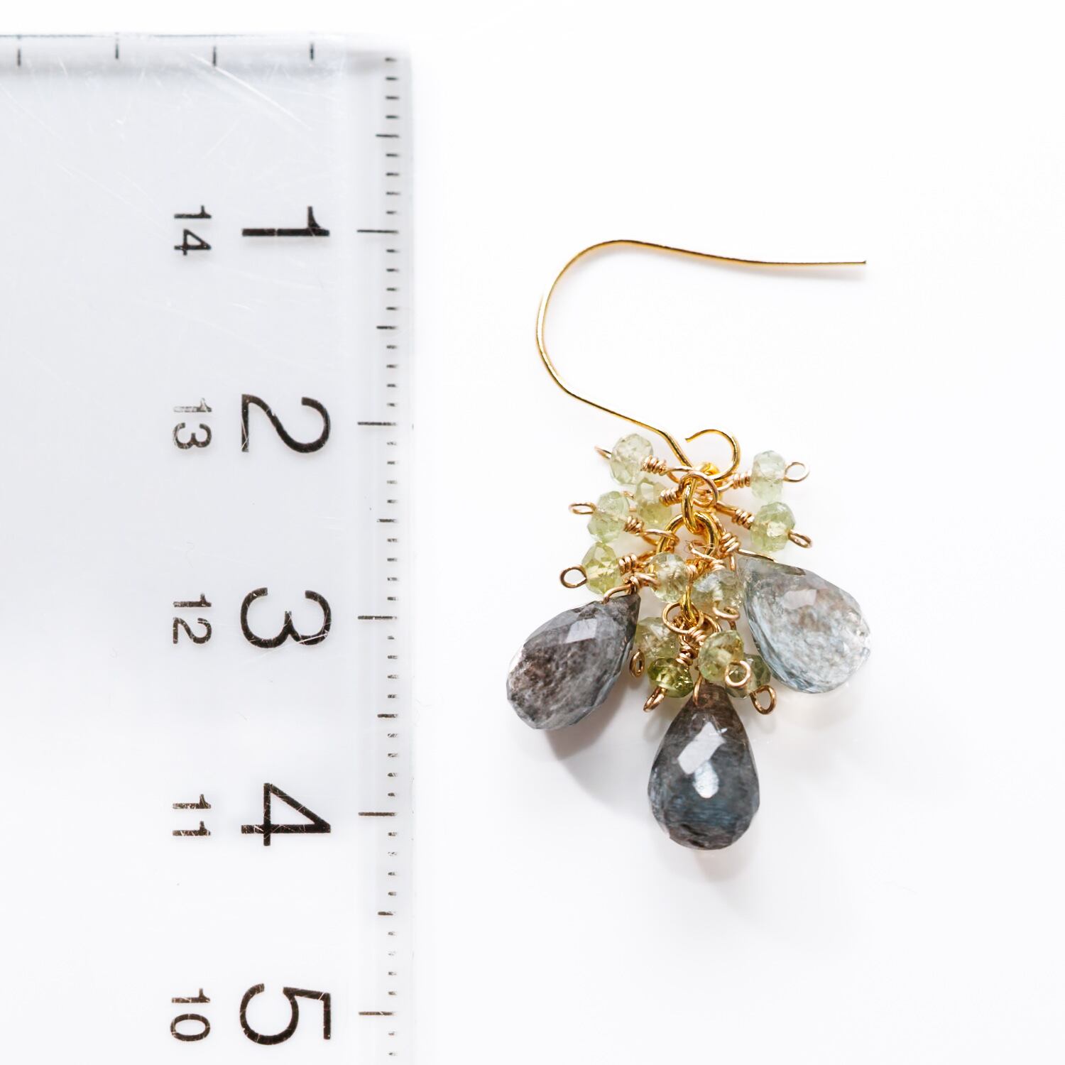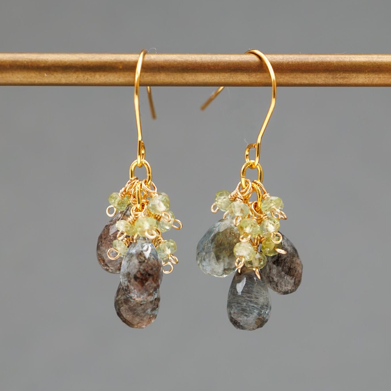 動くたびに天然石が軽やかに揺れ、光を受けてさりげなく輝きます。