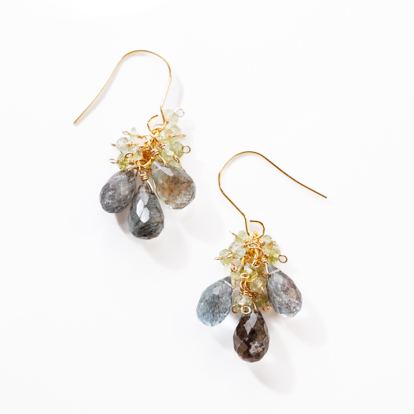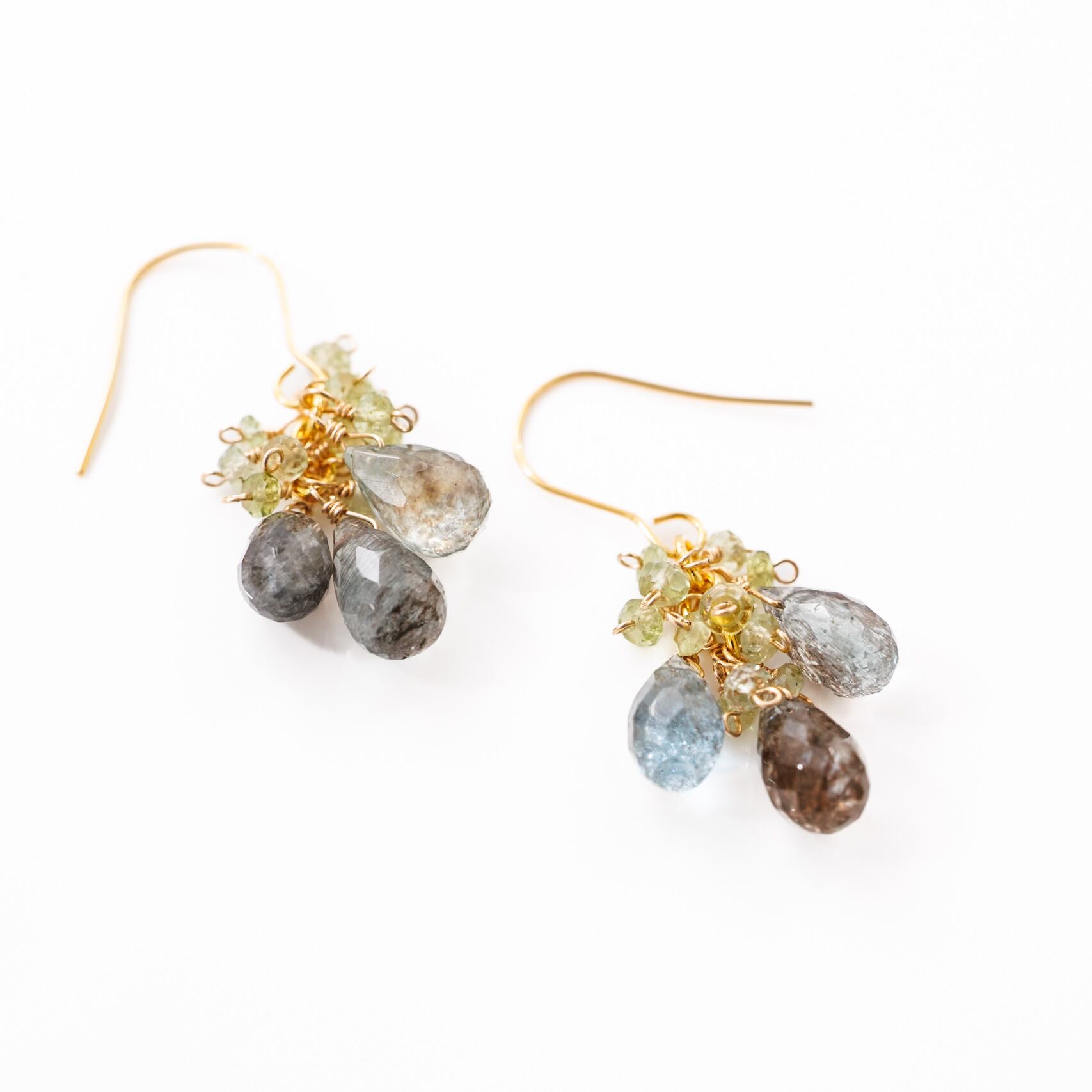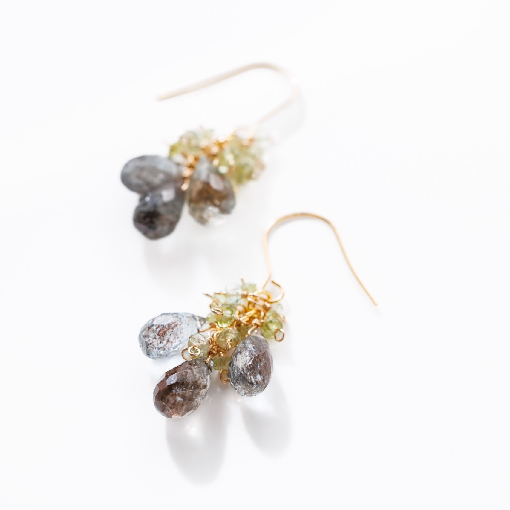 モスアクアマリン グリーントルマリン 戯れシリーズ ピアス