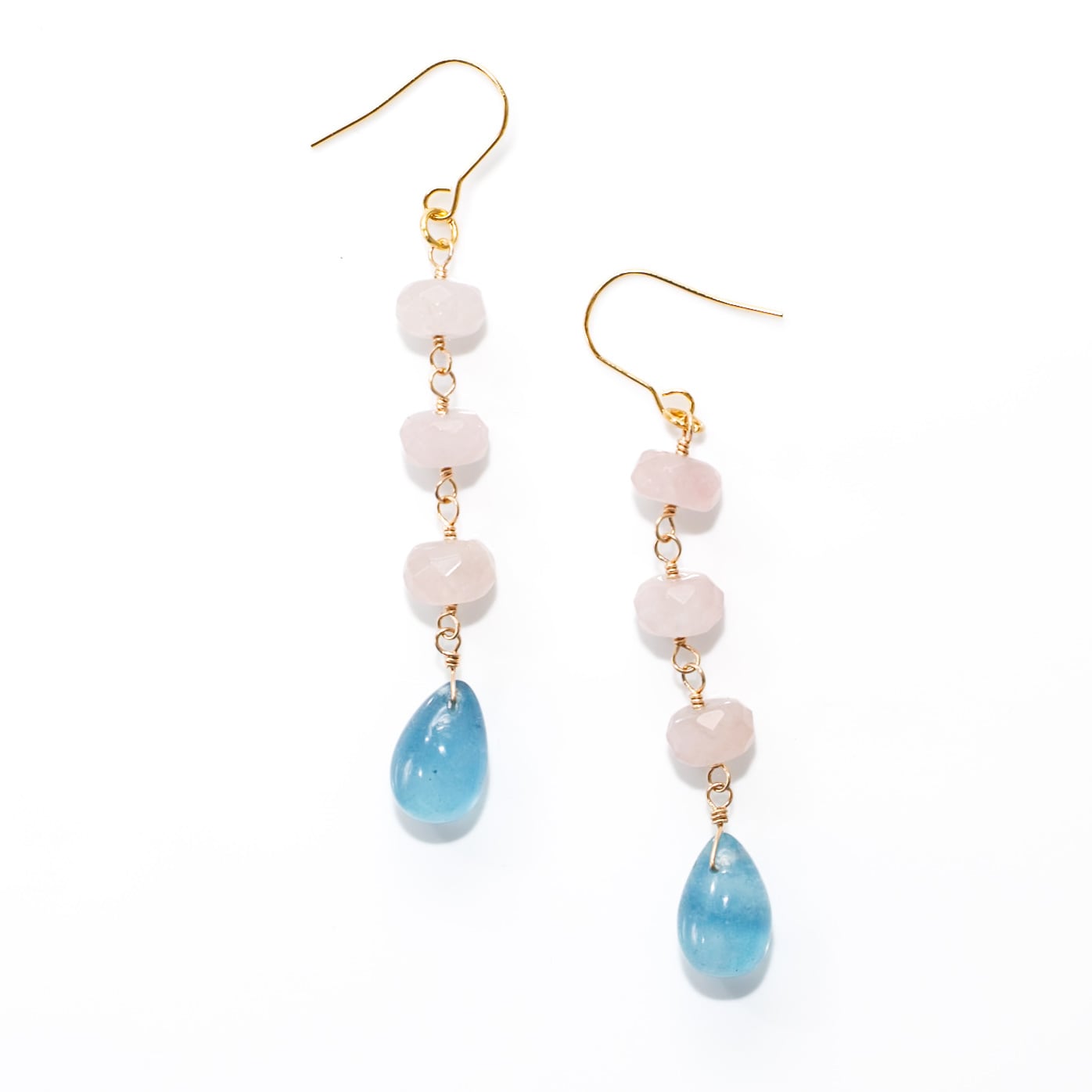 モルガナイト×アクアマリン 揺れる天然石ピアス 透明感