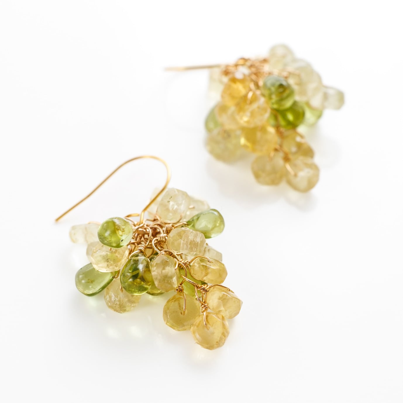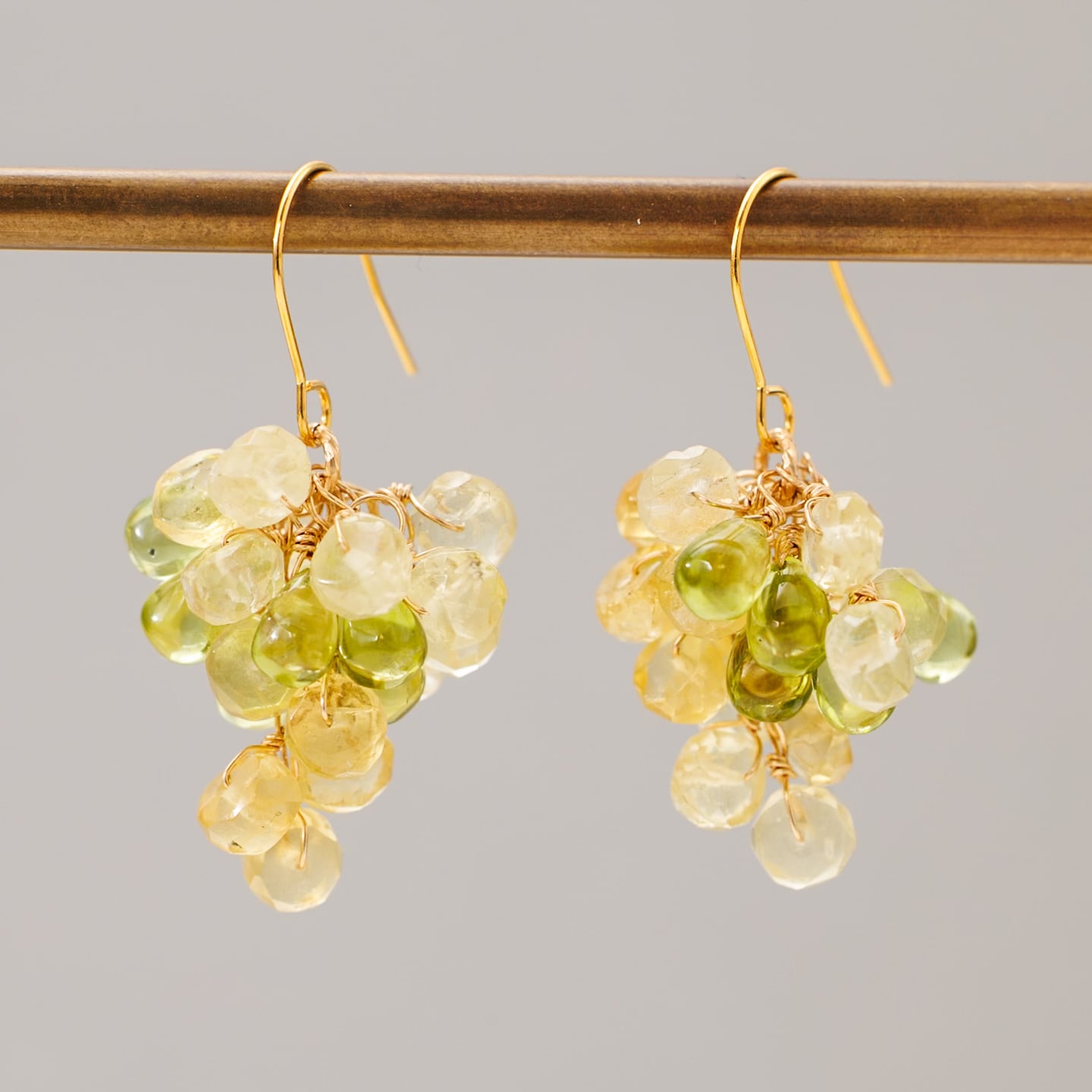 ペリドット×ヘリオドールのミモザカラーピアス 揺れる透明感