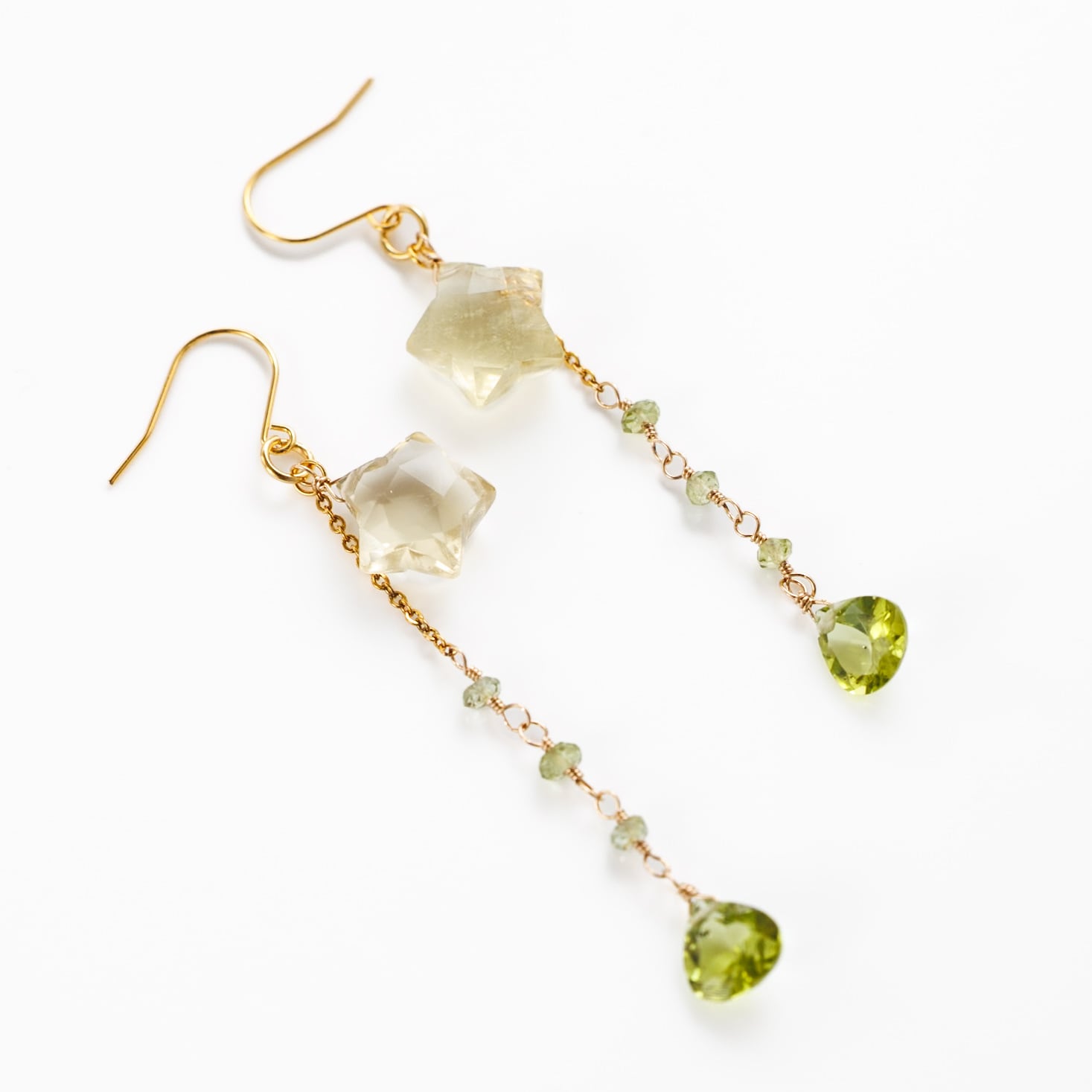 星のかたちをしたレモンクォーツが、耳元でそっときらめき、縦にすっと伸びるラインが軽やかで上品な印象に。