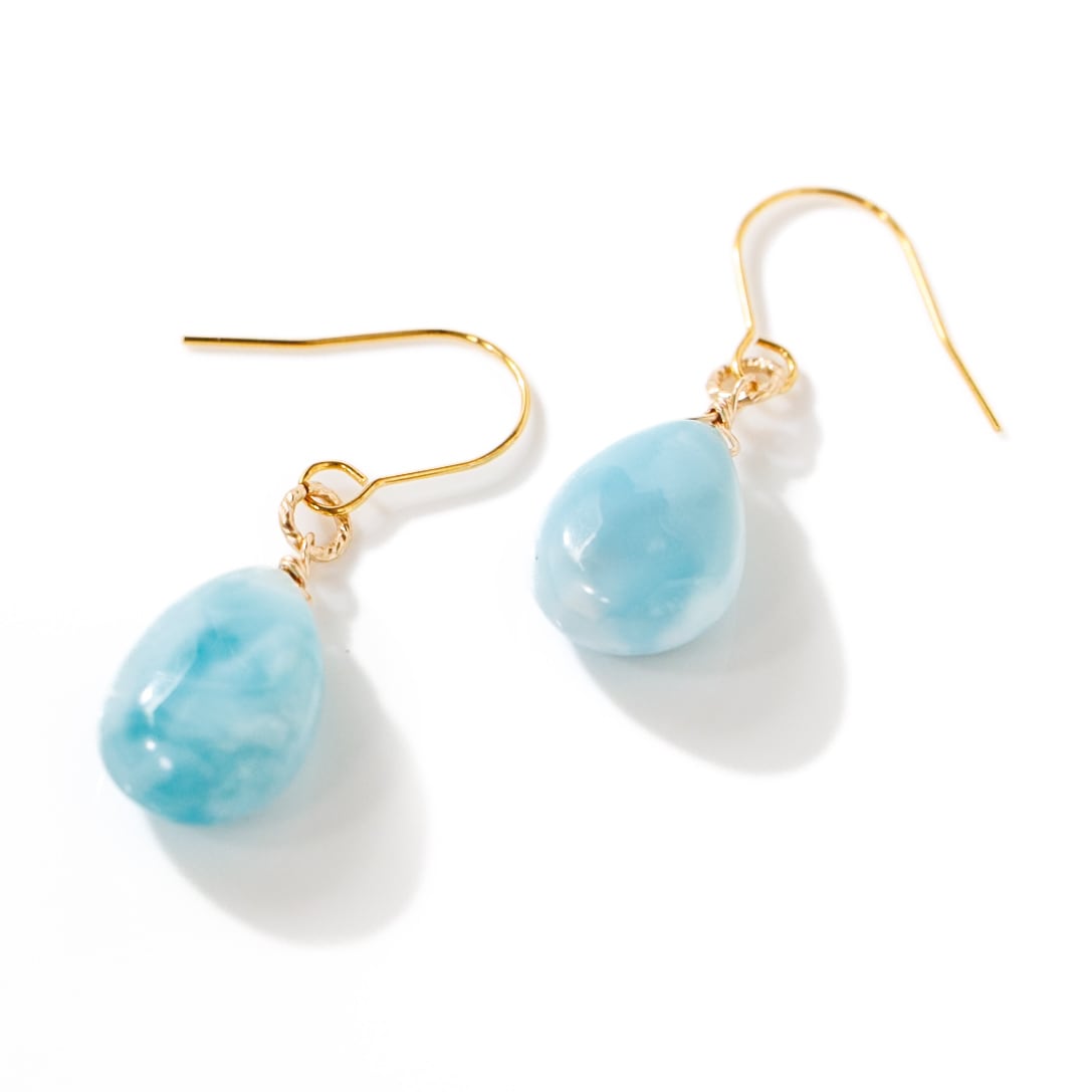 ラリマー 水色 一粒ピアス 透明感 揺れる 天然石アクセサリー