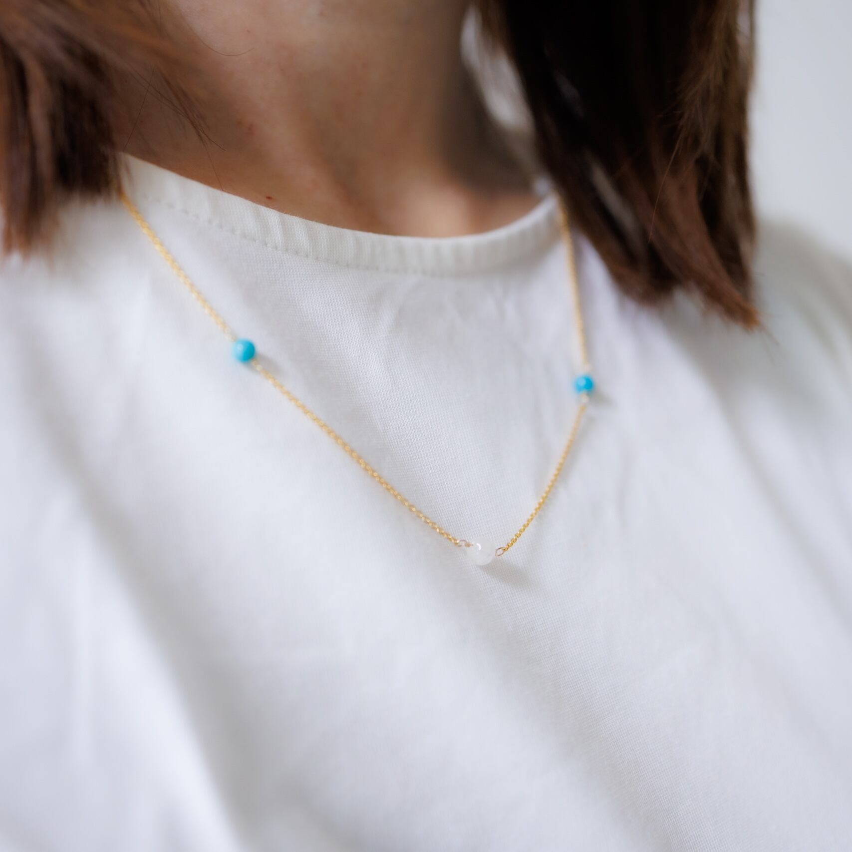 スリーピングビューティーターコイズとブルームーンストーンのネックレス