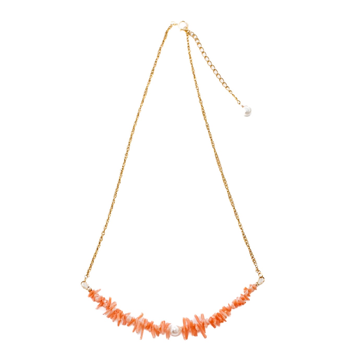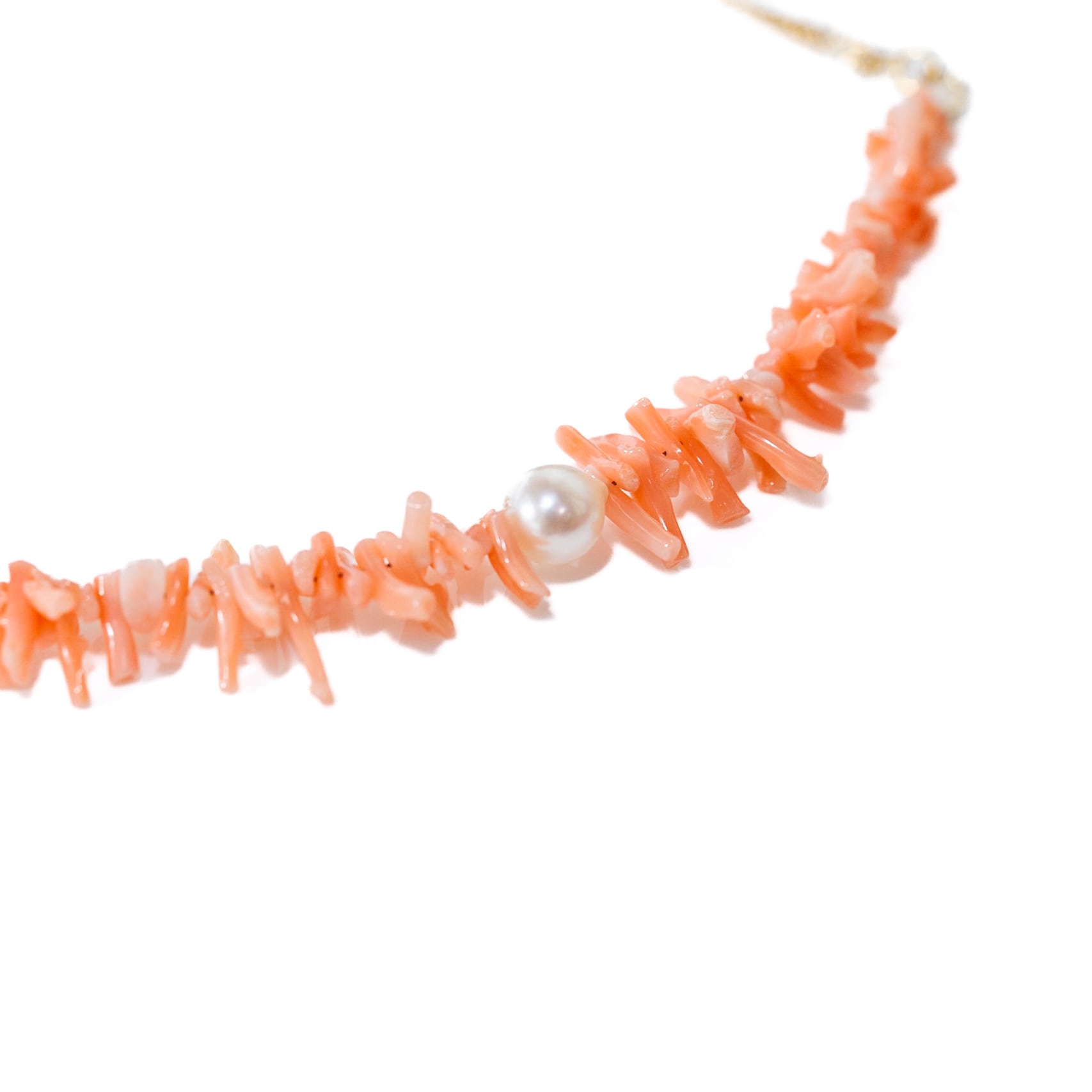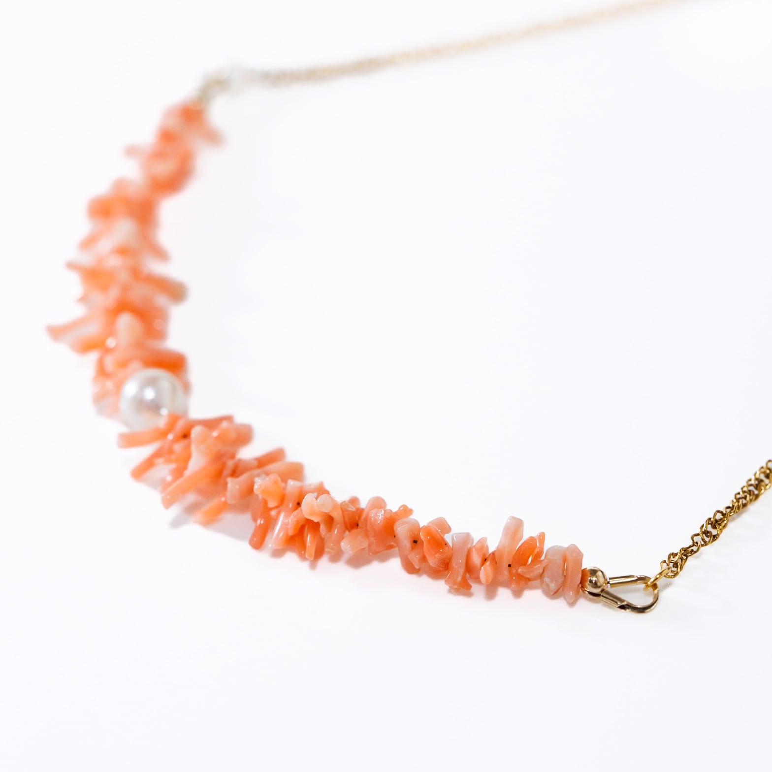 桃珊瑚とあこや真珠のスクリューチェーンネックレス