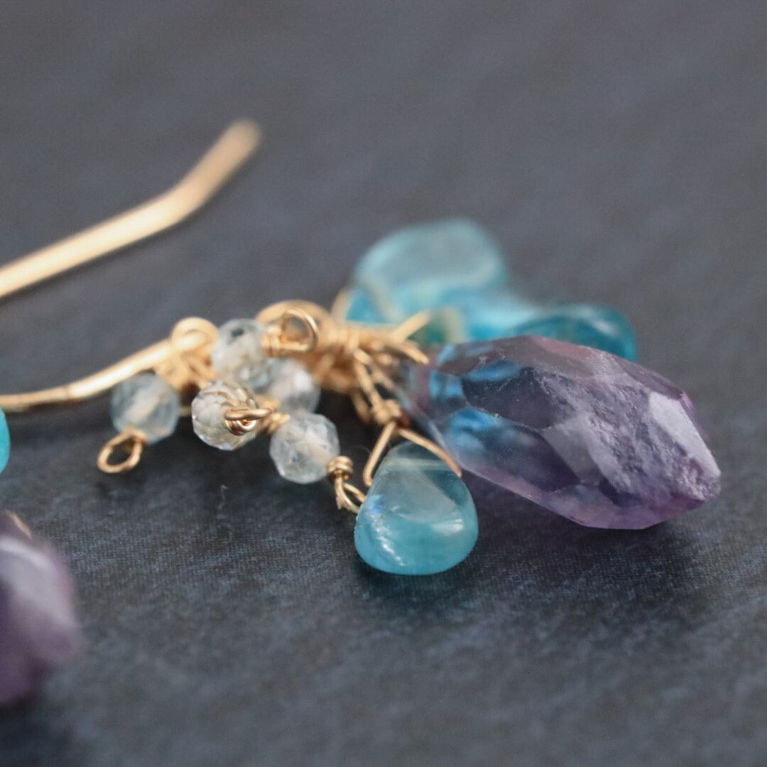 バイカラーフローライト、アパタイト、スカイブルートパーズのピアス