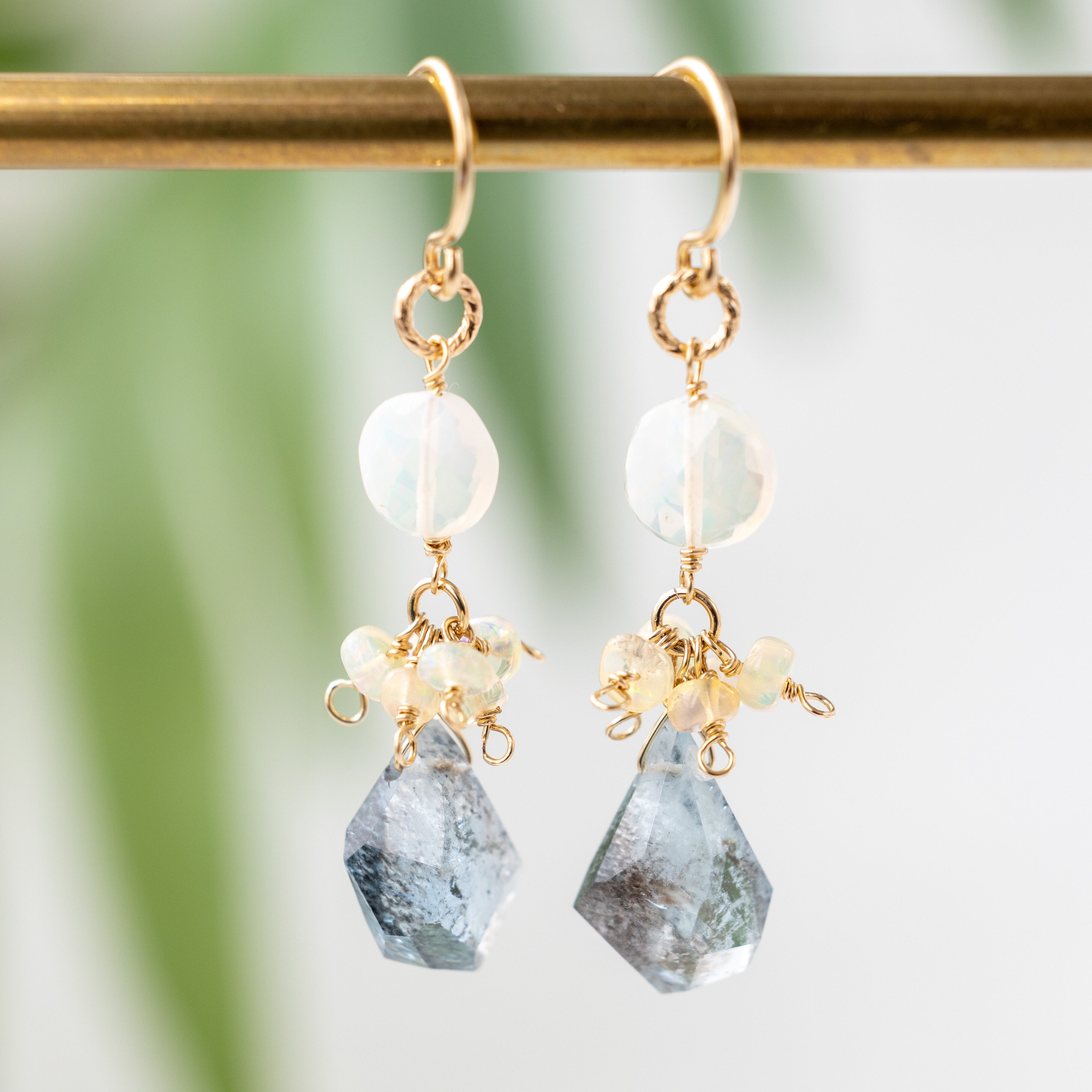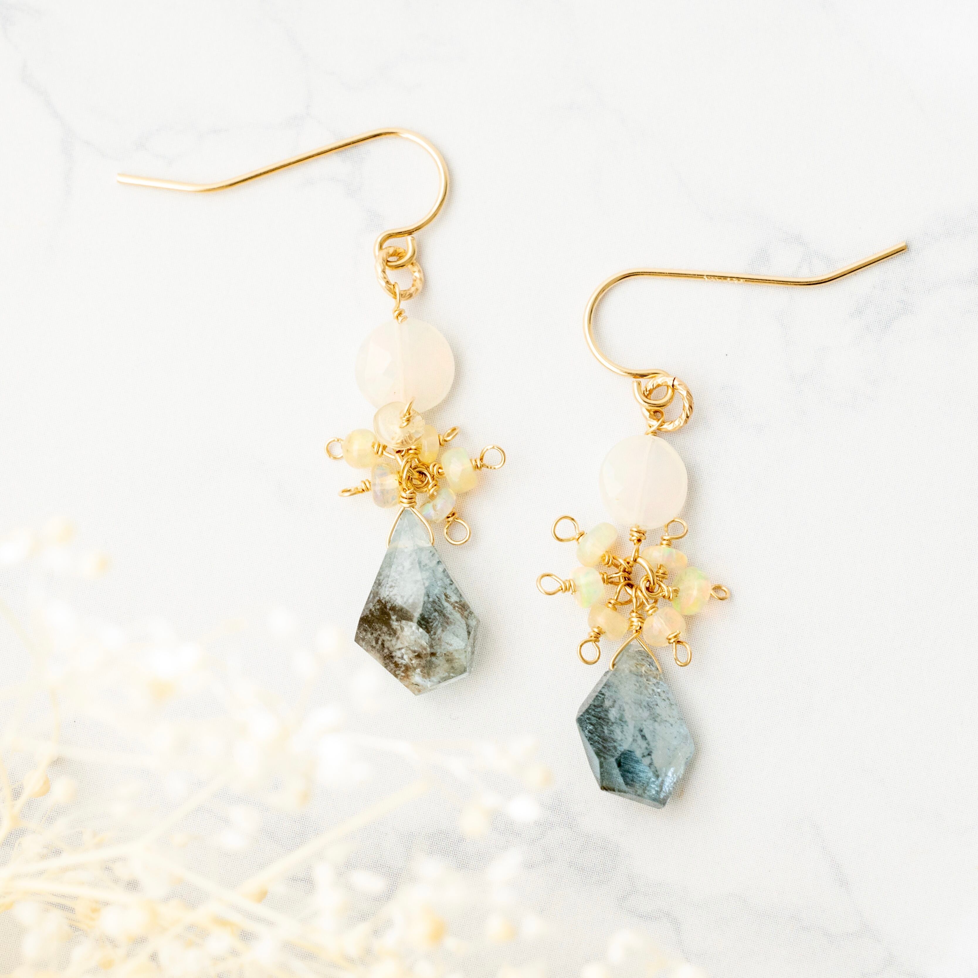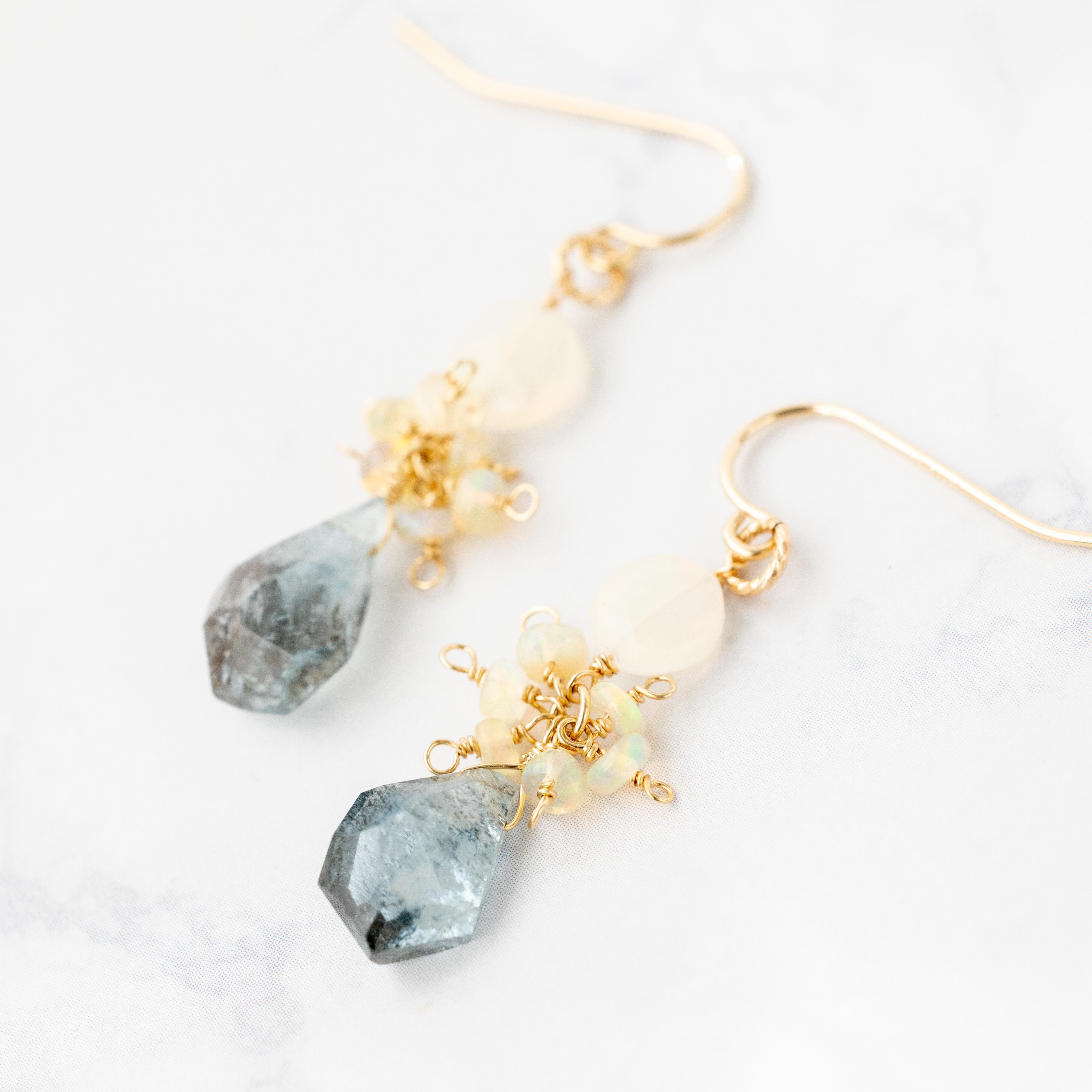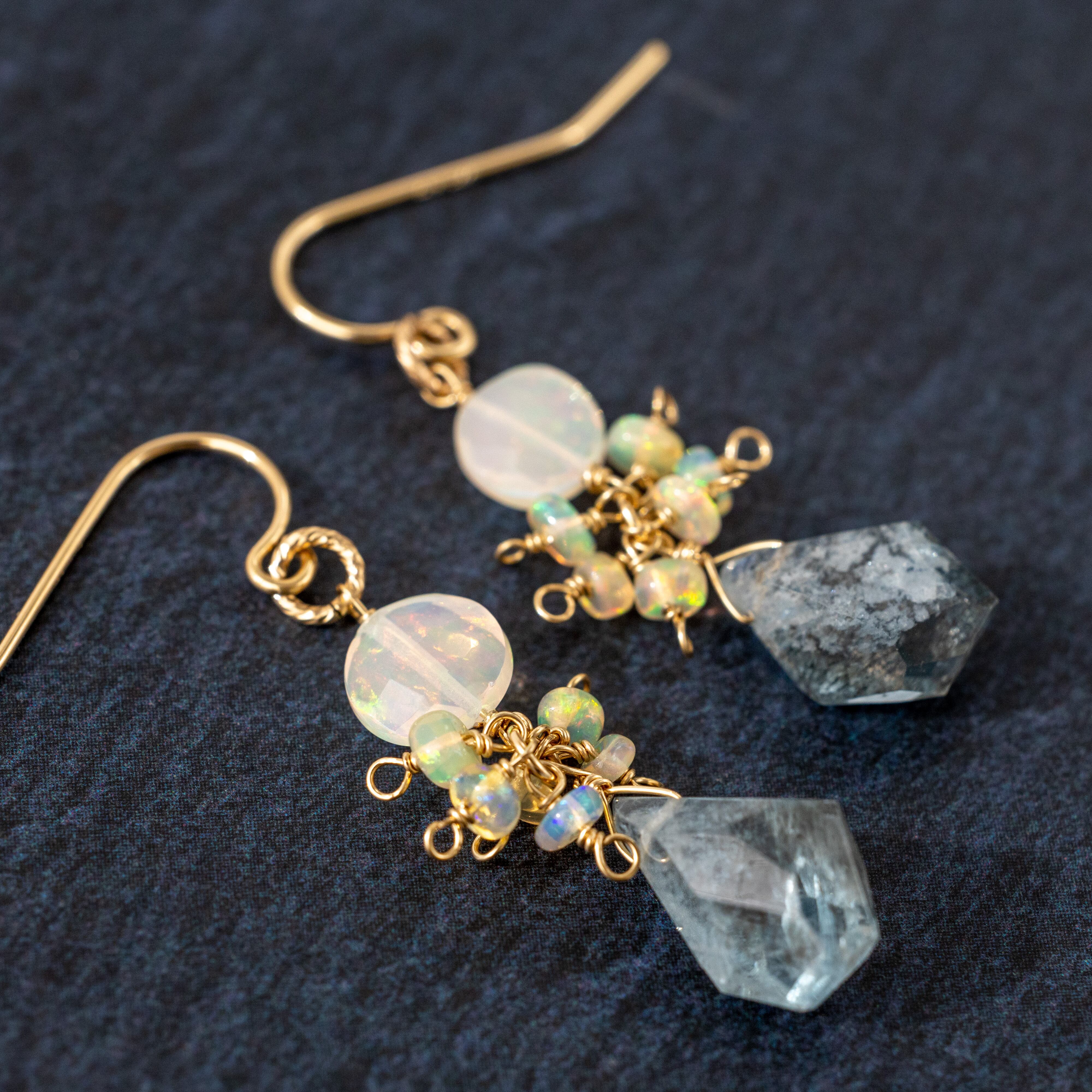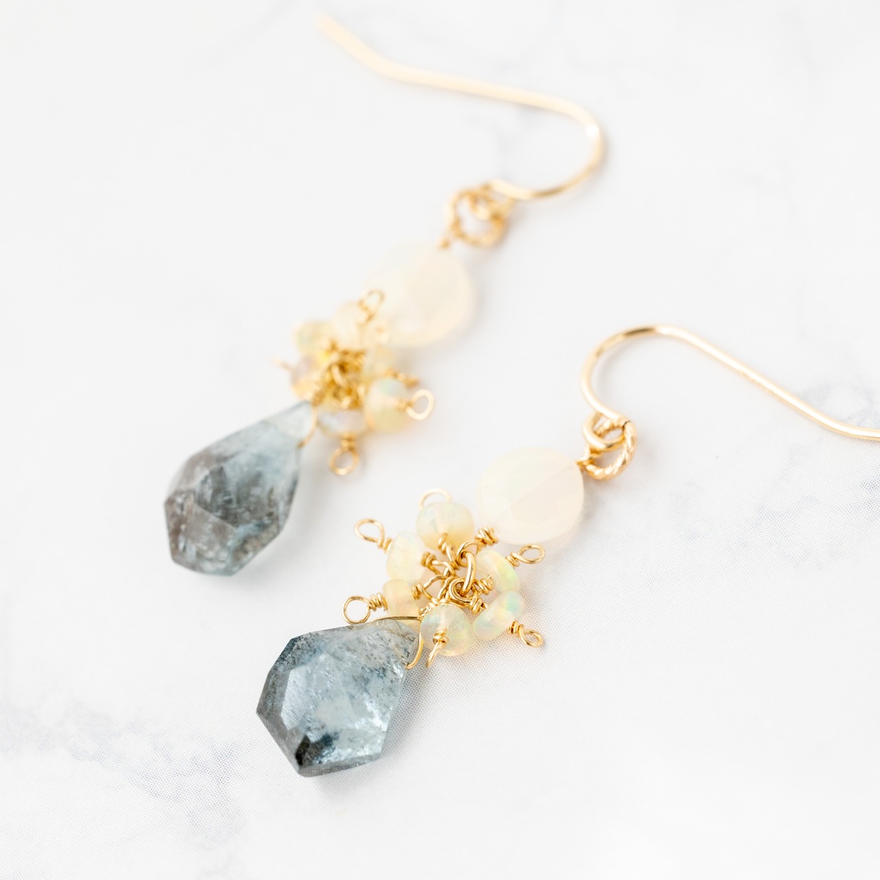 モスアクアマリン、プレシャスオパールのピアス/イヤリング