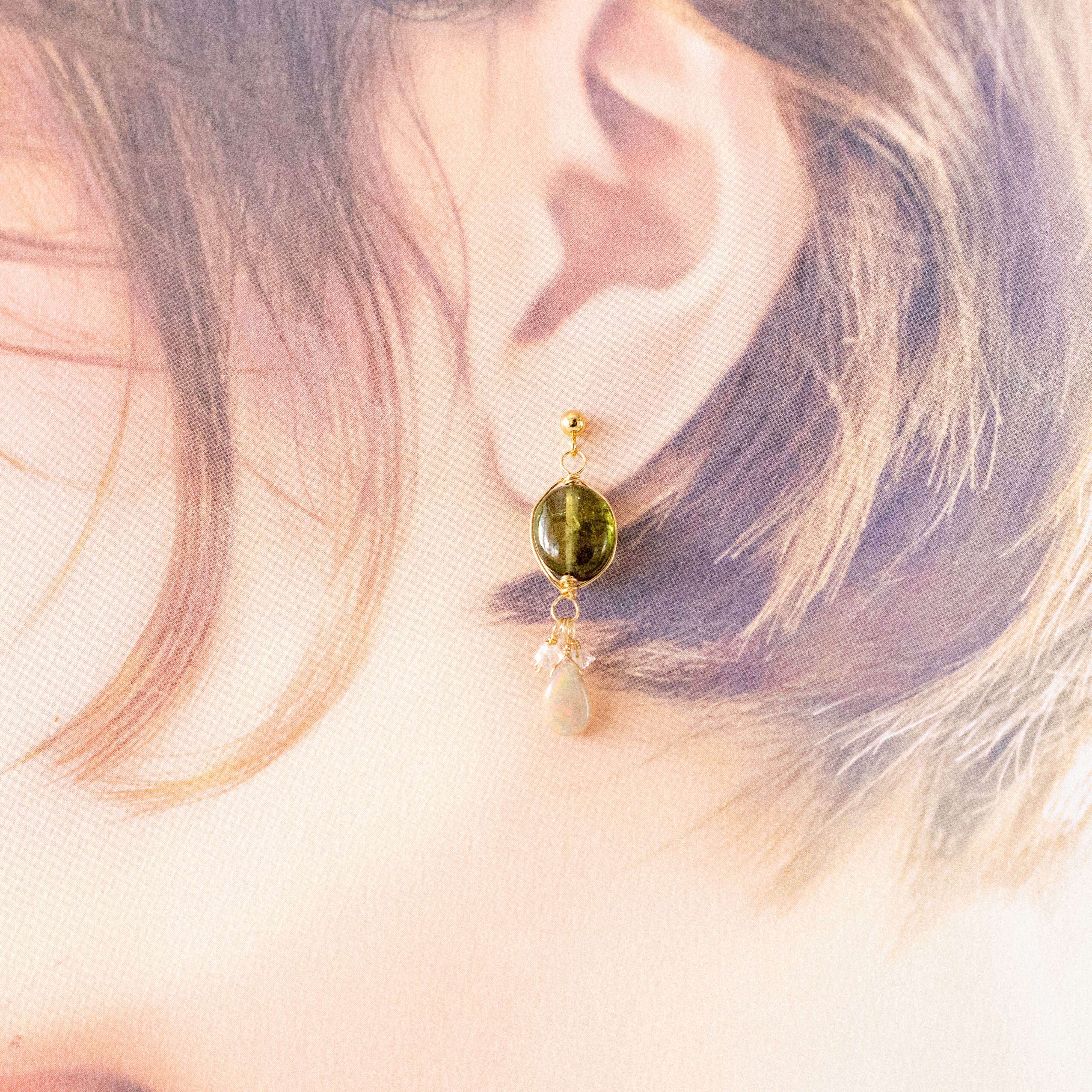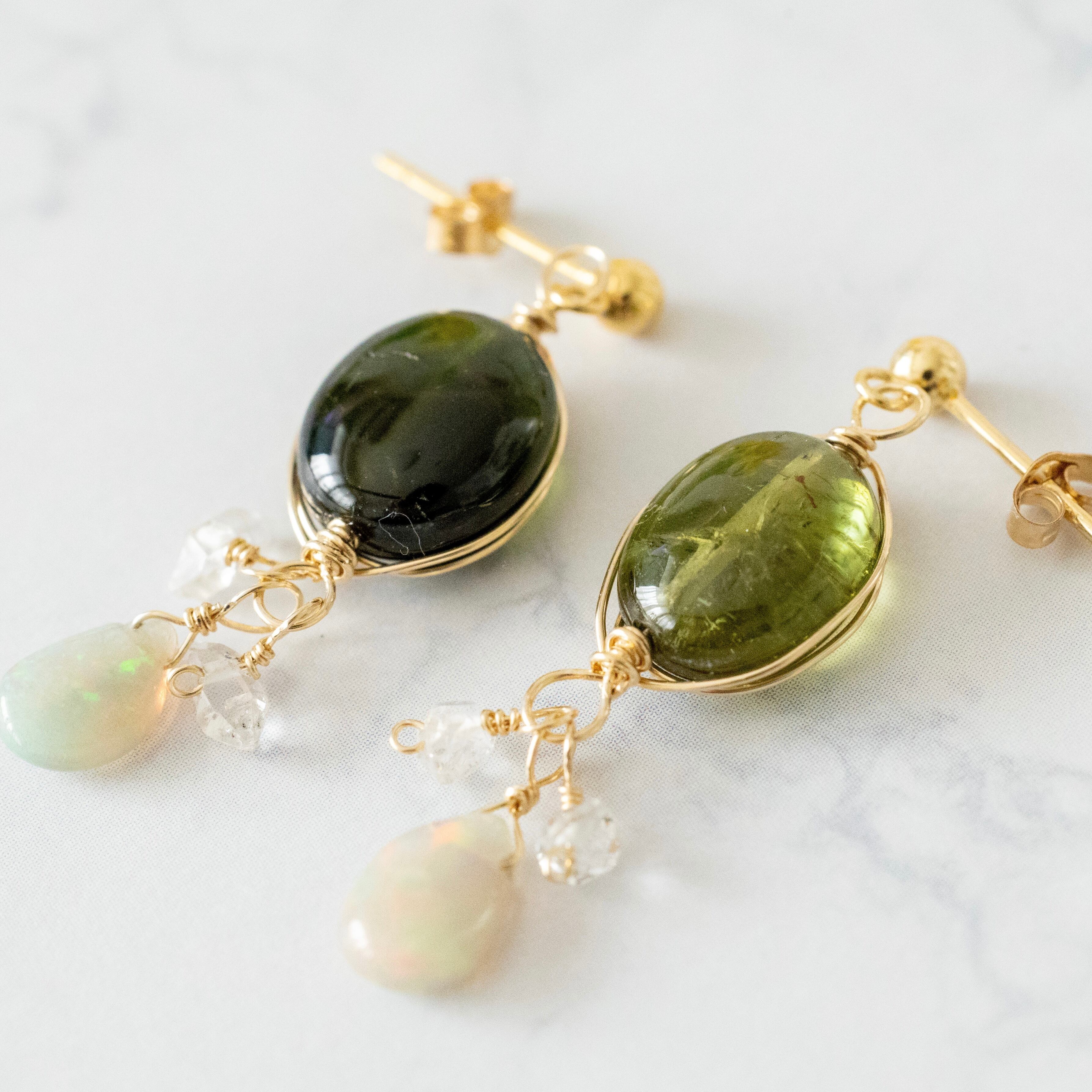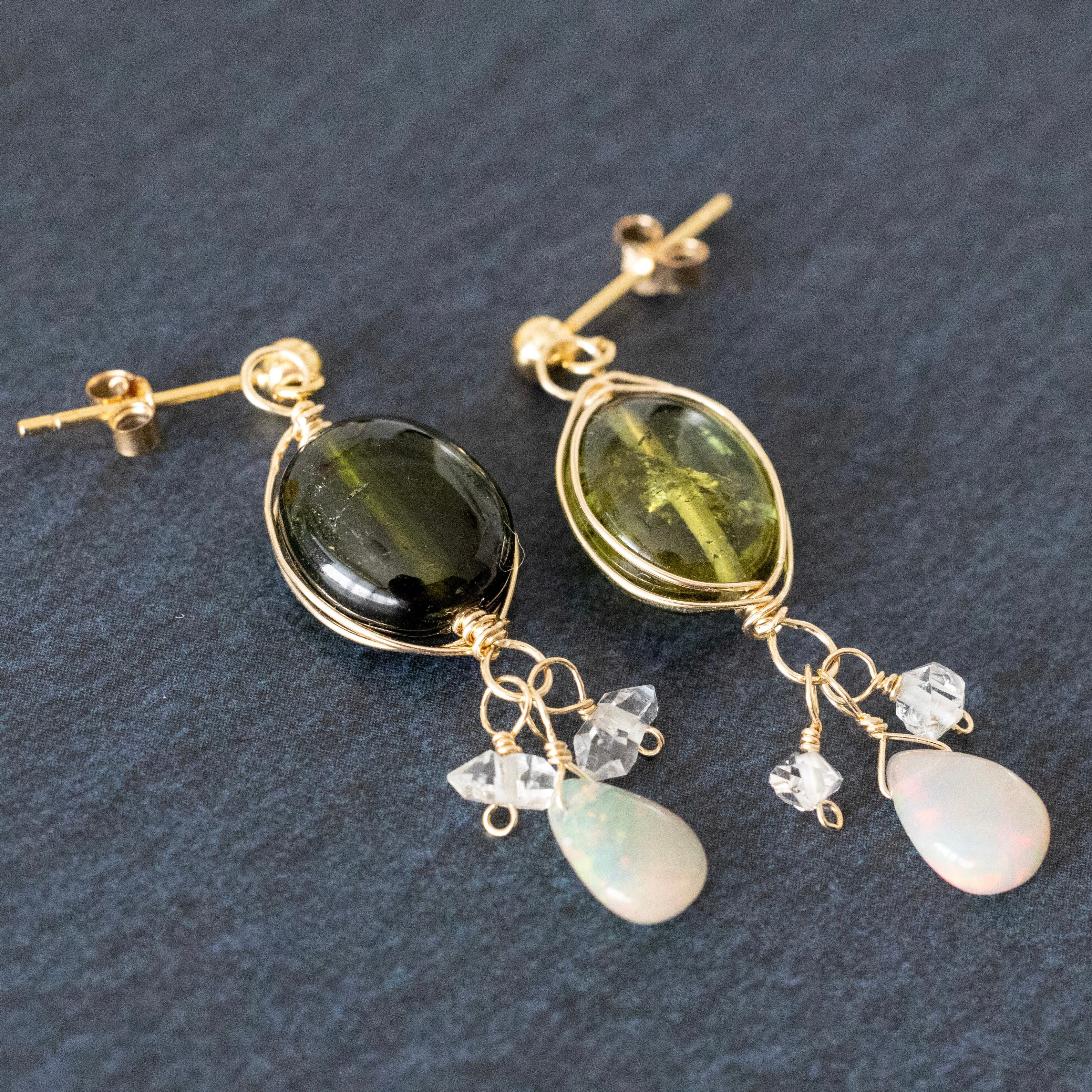 トルマリン、オパール、NYハーキマーダイヤモンドのピアス/イヤリング