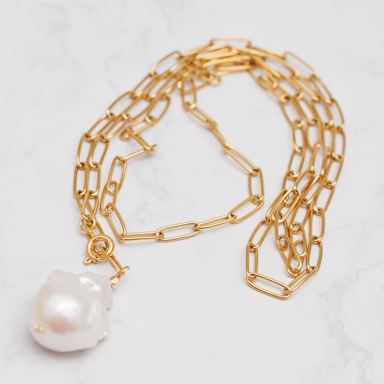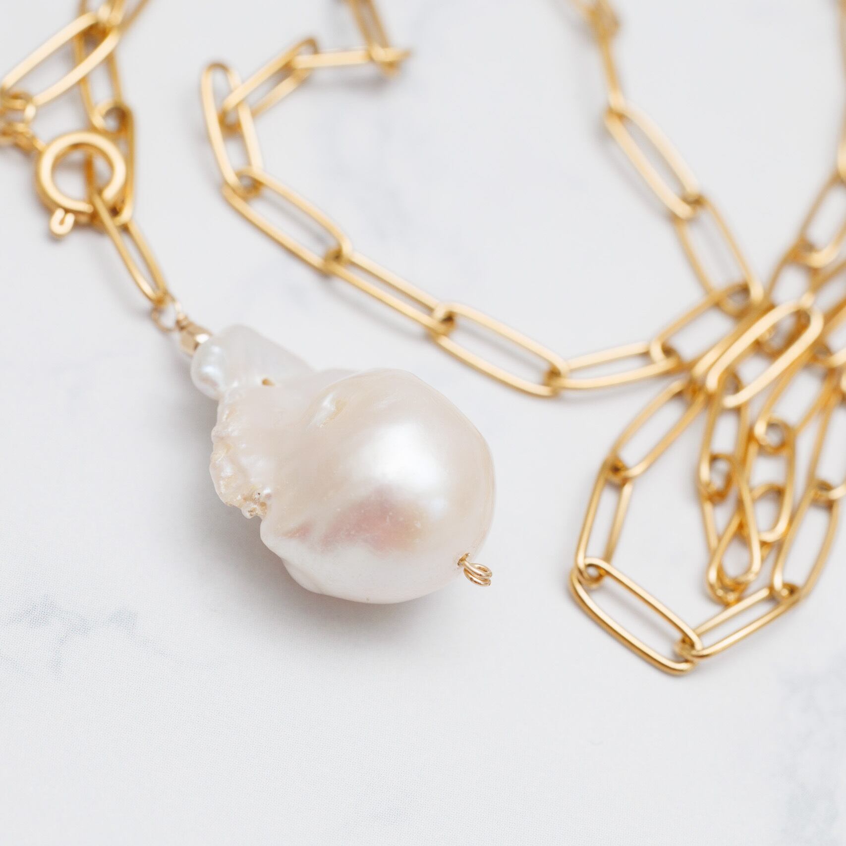 約2cm×1.5cmと大きなオイスターパールを使用したシンプルなネックレスです✧*。