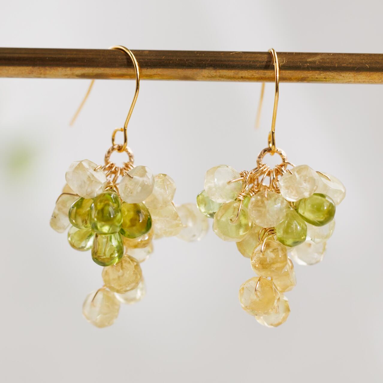 やさしい色合いのヘリオドールとペリドットのピアス/イヤリングです。