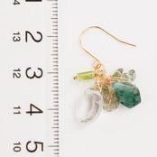 プラシオライト、モルダバイト、エメラルド、ペリドットのグリーンの天然石を使用したピアス/イヤリングです。