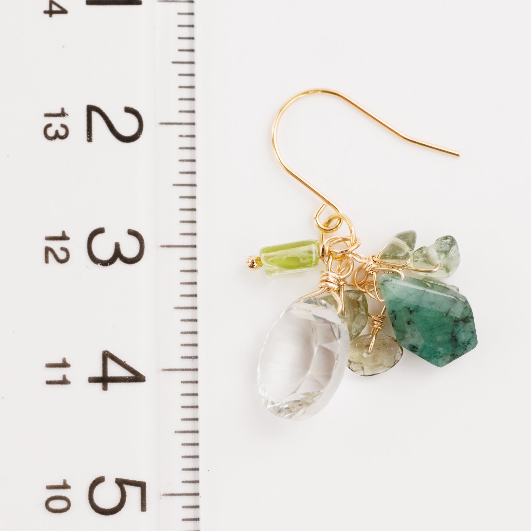 プラシオライト、モルダバイト、エメラルド、ペリドットのピアス/イヤリング