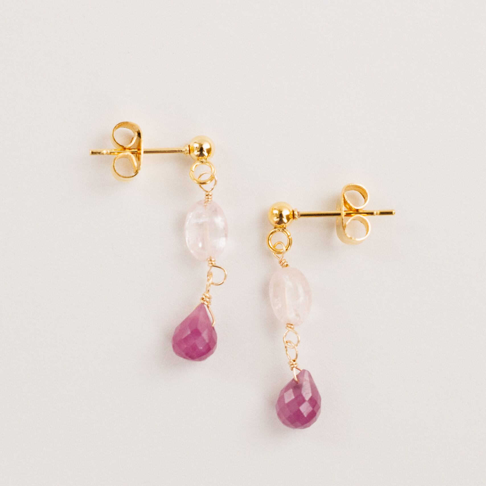 ハンドメイド ピアス イヤリング ピアスチャーム シンプル プレゼント ギフト デイリー 14kgf サージカルステンレス 送料無料 天然石 天然石アクセサリー ストーン お洒落 大人可愛い 誕生日 記念日 デート 女子会 お出かけ 旅行 お呼ばれ モルガナイト スタールビー ルビー 誕生石 4月 7月 ピンク レッド 大人アクセサリー 可愛い かわいい