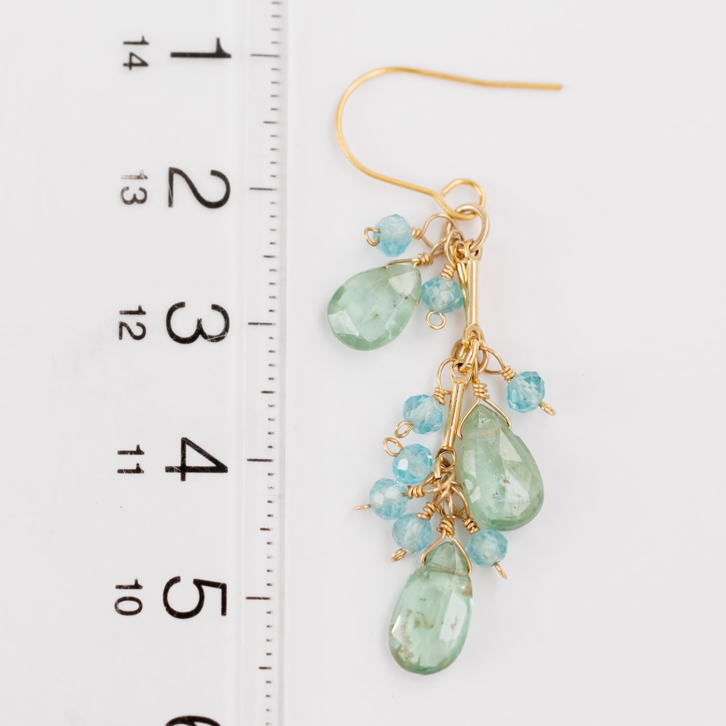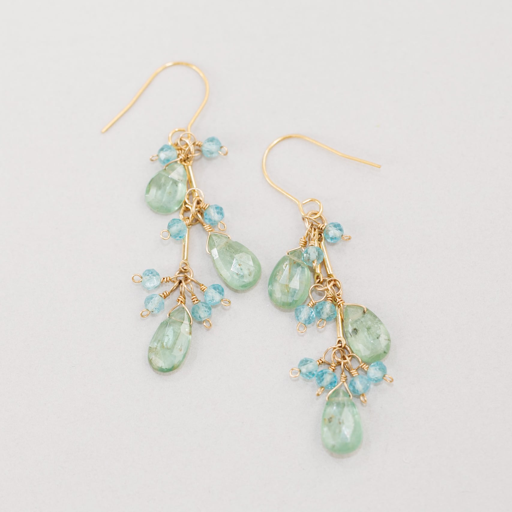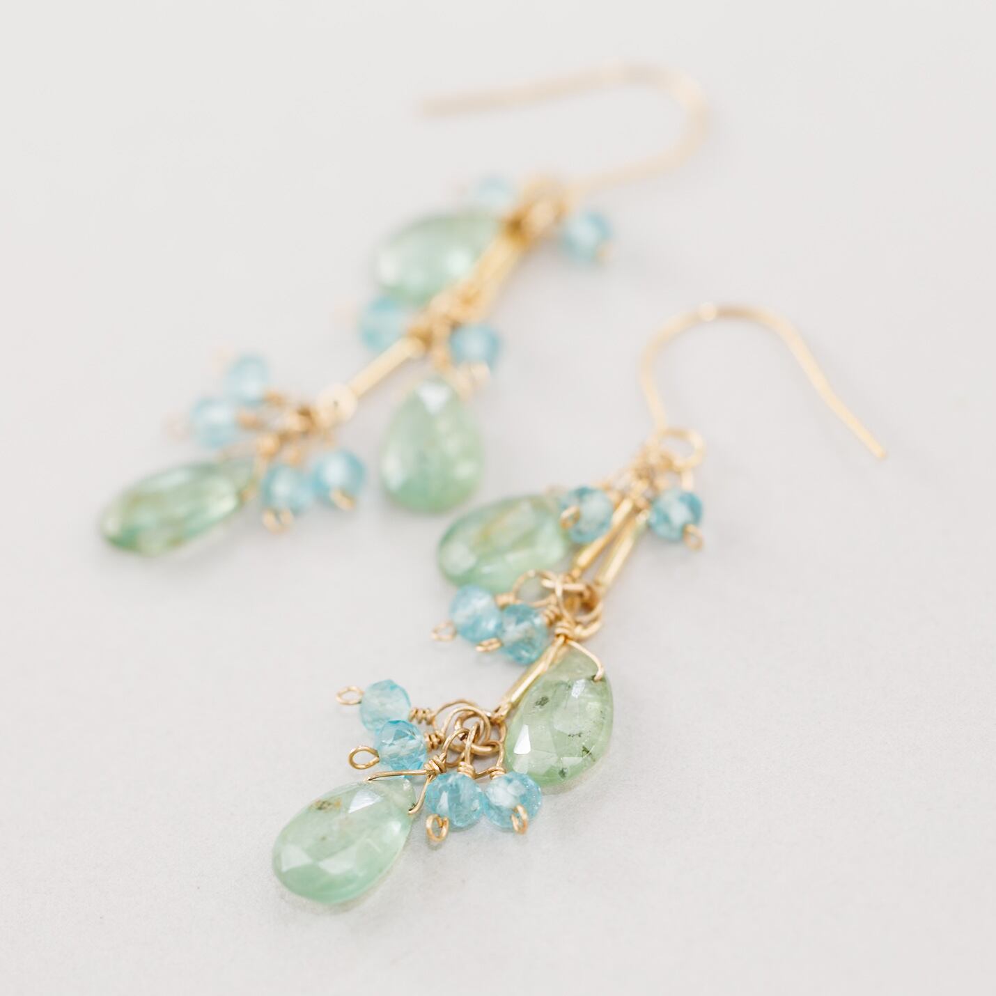 優雅なグリーンカイヤナイトとパライバアパタイトの美しい耳飾り。