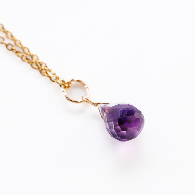 深みのある紫が美しい、アメシストの一粒ネックレスです。 2月の誕生石として知られるアメシストは強く主張しすぎず、胸元でそっと色づくような上品な存在感が魅力の天然石です。 デザインはあえて装飾を抑え、アメシストの紫色と透明感をそのまま楽しめるシンプルな一粒仕立てにしました。 石に詳しくない方でも取り入れやすく、 「誕生石をさりげなく身につけたい」という方にもおすすめです。 チェーンは約40cm。 首元に自然になじむ長さで、日常使いにも合わせやすいバランスです。 素材にはサージカルステンレスを使用しており、 肌にやさしく、気軽に楽しんでいただけます。 チェーンの長さは45cm、50cmとオプションで変更可能です。 控えめだけれど、確かに気分が上がる。 そんな毎日に寄り添う、やさしい紫のネックレスです。 【サイズ】 約1.6cm(ネックレスチャーム) 【素材】 ・アメシスト ・金具、ワイヤー 14kgf ・チェーン サージカルステンレス 14kgf(ゴールドフィルド)は、真鍮などの芯材に14金を圧着させた素材で、長く美しい輝きを保ちます。金属アレルギーを起こしにくいとされていますが、体質には個人差があります。 金属アレルギーを起こしにくい素材ですが個人差がある為、肌に合わない方はご使用をお控えください。 【お手入れ方法】 使用後は柔らかい布などでお手入れして頂くと長く使用できます。 直射日光の当たらない場所での保管をおすすめします。 ---------------------------------------- 【ラッピング包装】 ・5種類のリボンから選べるギフト包装(有料)をご用意しています。 大切な方へのプレゼントにぜひご利用ください。 https://chocoriita.base.shop/items/93325263 【他の作品はこちら】 ・他にも天然石を使用した大人かわいいハンドメイドアクセサリーを多数ご用意しております。 https://chocoriita.base.shop/ ---------------------------------------- 【お手入れと保管】 ・長くご愛用いただくために、ご使用後は柔らかい布で優しく拭き、直射日光を避けた場所での保管をおすすめします。 【ご購入の前に】 ・天然石の個性 天然石は自然が生み出した一点ものです。 石の中にインクルージョン(内包物)やクラック(小さなヒビ)が見られたり、左右で色味や模様が異なる場合がございます。 これも天然素材ならではの魅力としてお楽しみください。 ・ハンドメイドについて 一つひとつ丁寧に製作しておりますが、既製品のような強度はありません。強い衝撃を加えると、破損や変形の原因となりますので、優しくお取り扱いください。 ・色味について お使いのモニター環境により、実物と色味が異なって見える場合がございます。予めご了承ください。 【配送について】 クリックポストまたはレターパックライトからお選びいただけます。 ----------------------------------------